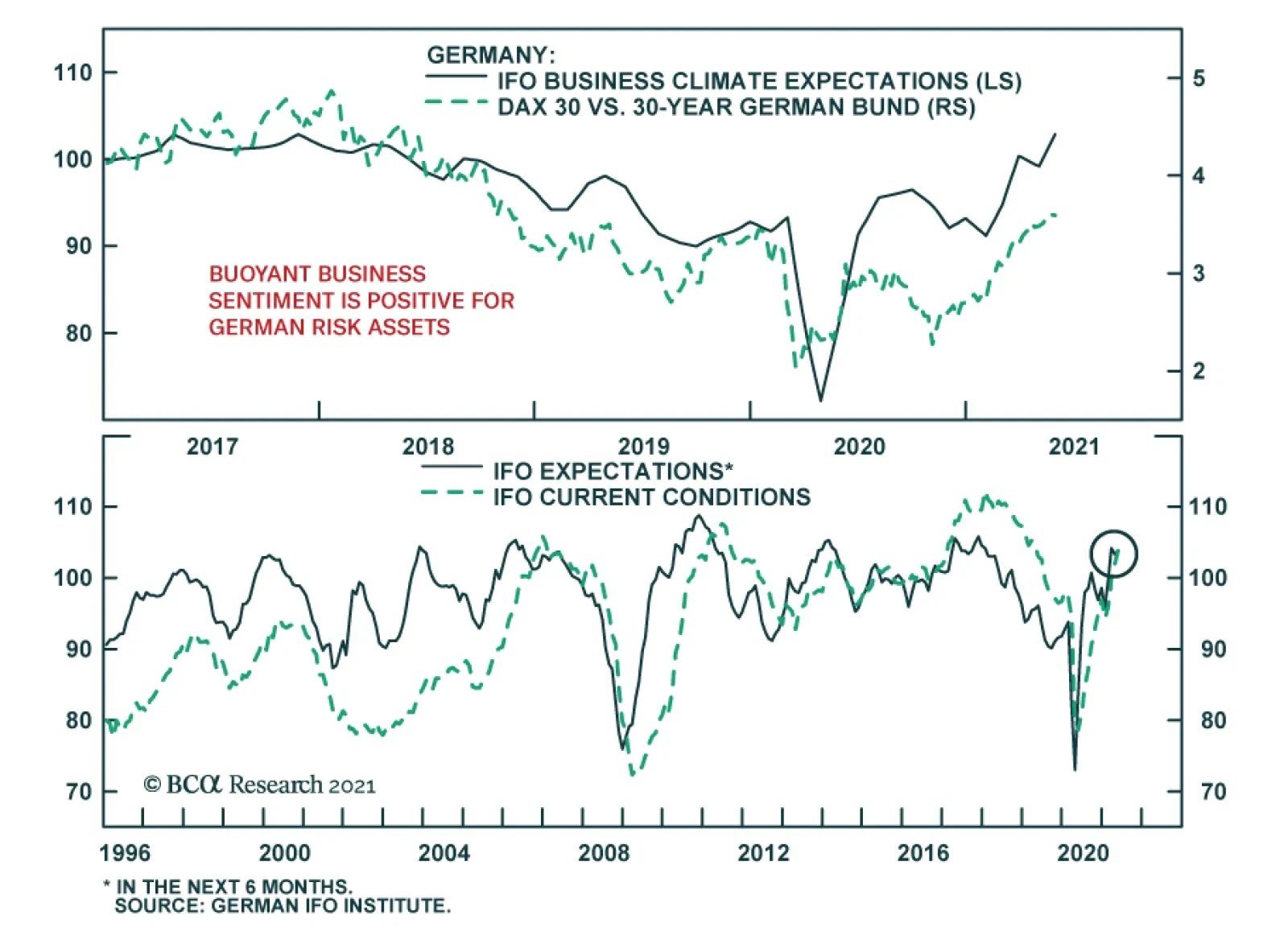 The German IFO rose sharply in May, indicating that business confidence is firming. After a disappointing release in April, the Business Climate index jumped 2.6 points to 99.2, beating expectations of a more muted increase to 98…