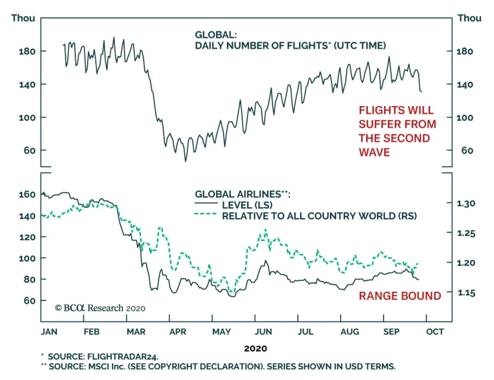 The lack of pulse of global airline stocks is at odds with the rebound in industrial equities. However, it highlights our theme of avoiding the sectors that remain affected by social distancing measures. With the second wave of infections in advanced…