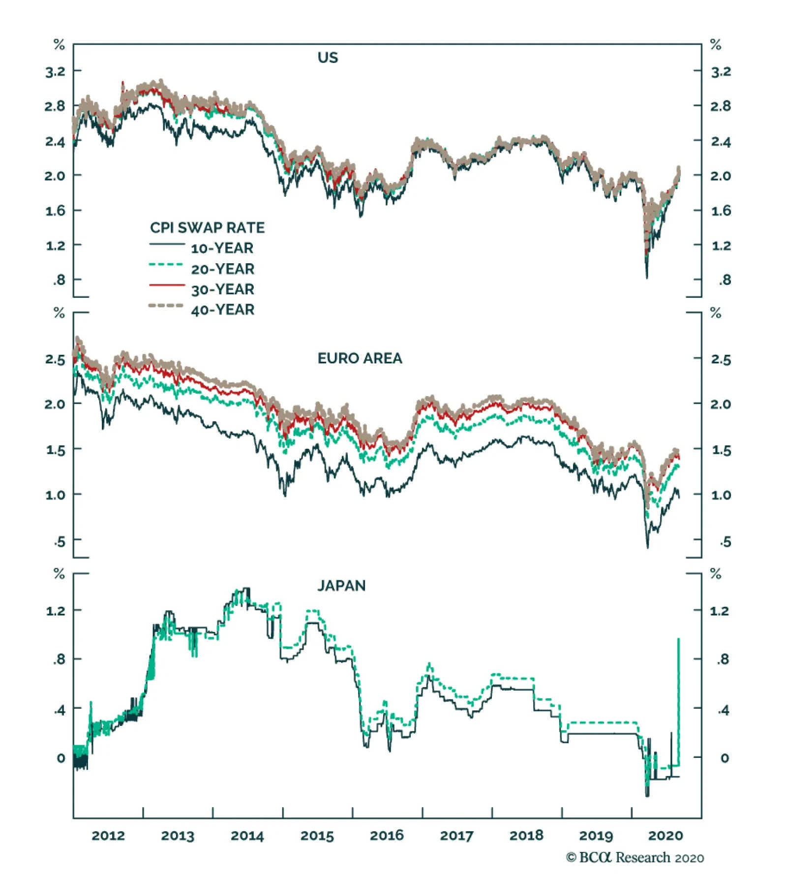 Moreover, the Fed’s new strategic framework announced in late August represents a commitment to keep monetary policy loose even when the economy begins to overheat. The Fed will (1) target 2% inflation on average over time which means that, after a period of low inflation, it will “aim to achieve inflation moderately above 2 percent for some time”; and (2) treat its employment mandate as asymmetrical, so that when employment is below potential the Fed will be accommodative, but that a rise in employment above its “maximum level” will not necessarily trigger tightening. Historically the Fed has raised rates when unemployment approached its natural rate (Chart 6). The new policy implies it will no longer do so. The aim of the policy is to raise inflation expectations which have become unanchored, with headline PCE inflation above the Fed’s 2% target for only 14 out of 102 months since the target was introduced in February 2012 (Chart 6, panel 3). Chart 6The Fed's Behavior Will Be Different In Future