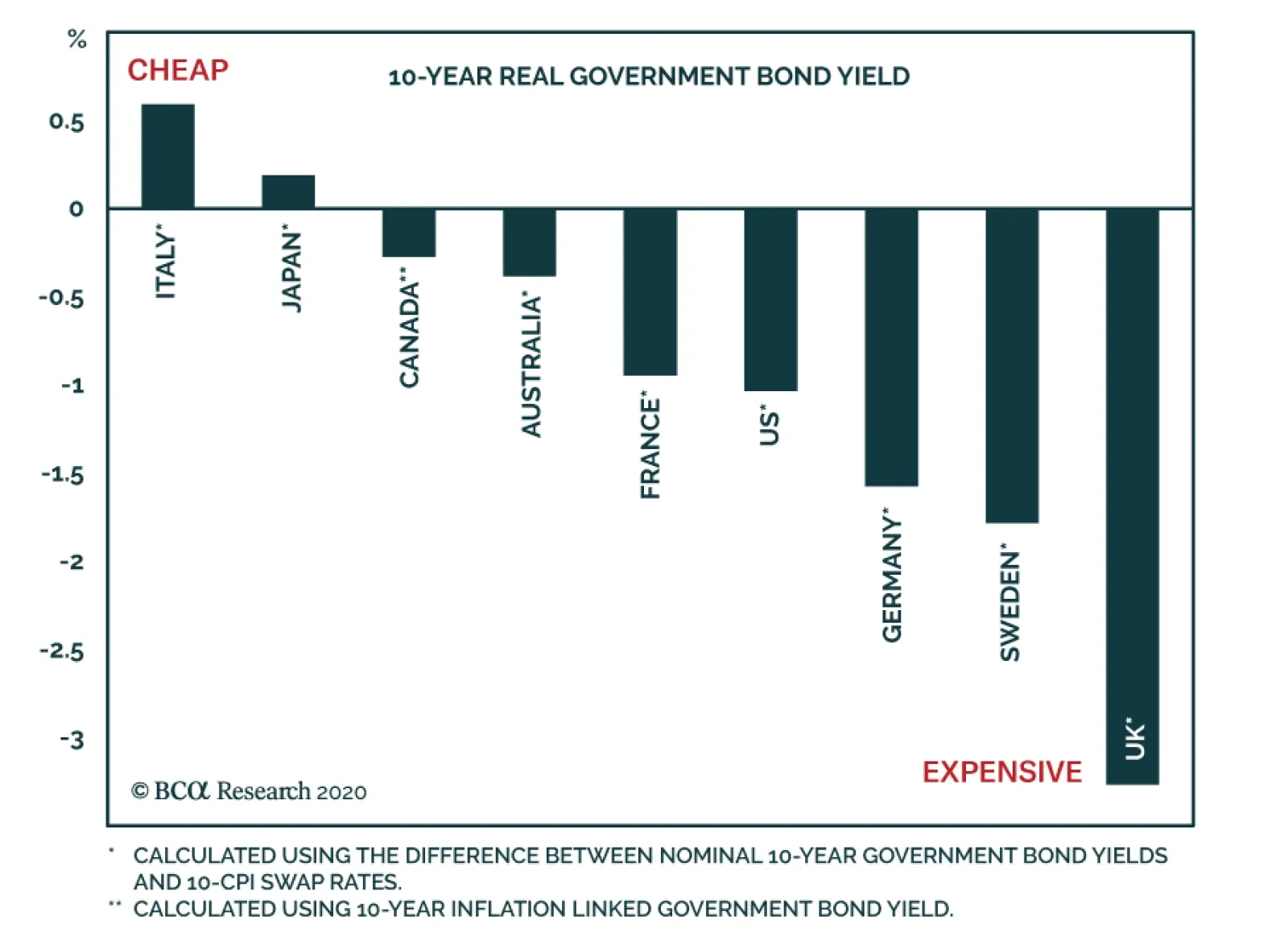 Are Bond Yields Distorted To The Downside? The notion that the pandemic may have increased the fair value of the stock market hinges critically on the view that the discount rate has fallen substantially this year. We will get to the question of what the appropriate level of the equity risk premium should be in a moment, but let us first examine the risk-free component of the discount rate. Many pundits argue that central bank bond purchases have pushed down yields below where they ought to be. That may be true, but it is not clear why that matters. If one is making present value calculations, one should look at the actual bond yield, not the yield that accords with one’s preconception of what is appropriate. Granted, if bond yields were to rise sharply in the future, the present value of future earnings would probably end up falling. However, this is unlikely to occur anytime soon. It will take a while for unemployment to return to pre-pandemic levels, during which time inflation will remain dormant. And even once inflation starts rising, central banks will likely refrain from hiking rates because they have been concerned about excessively low inflation for nearly two decades. Central banks could also face pressure from governments to keep rates low in order to suppress interest costs. As a result, real rates could fall initially, which would be supportive of stocks. The bull market in equities will only end when inflation reaches a level that makes markets nervous that central banks will have to raise rates. This is unlikely to happen for the next three years. The Equity Risk Premium Is More Likely To Fall Than Rise Chart 8Non-US Stocks Look Cheaper Than Their US Peers In Both Absolute Terms And In Relation To Bond Yields
