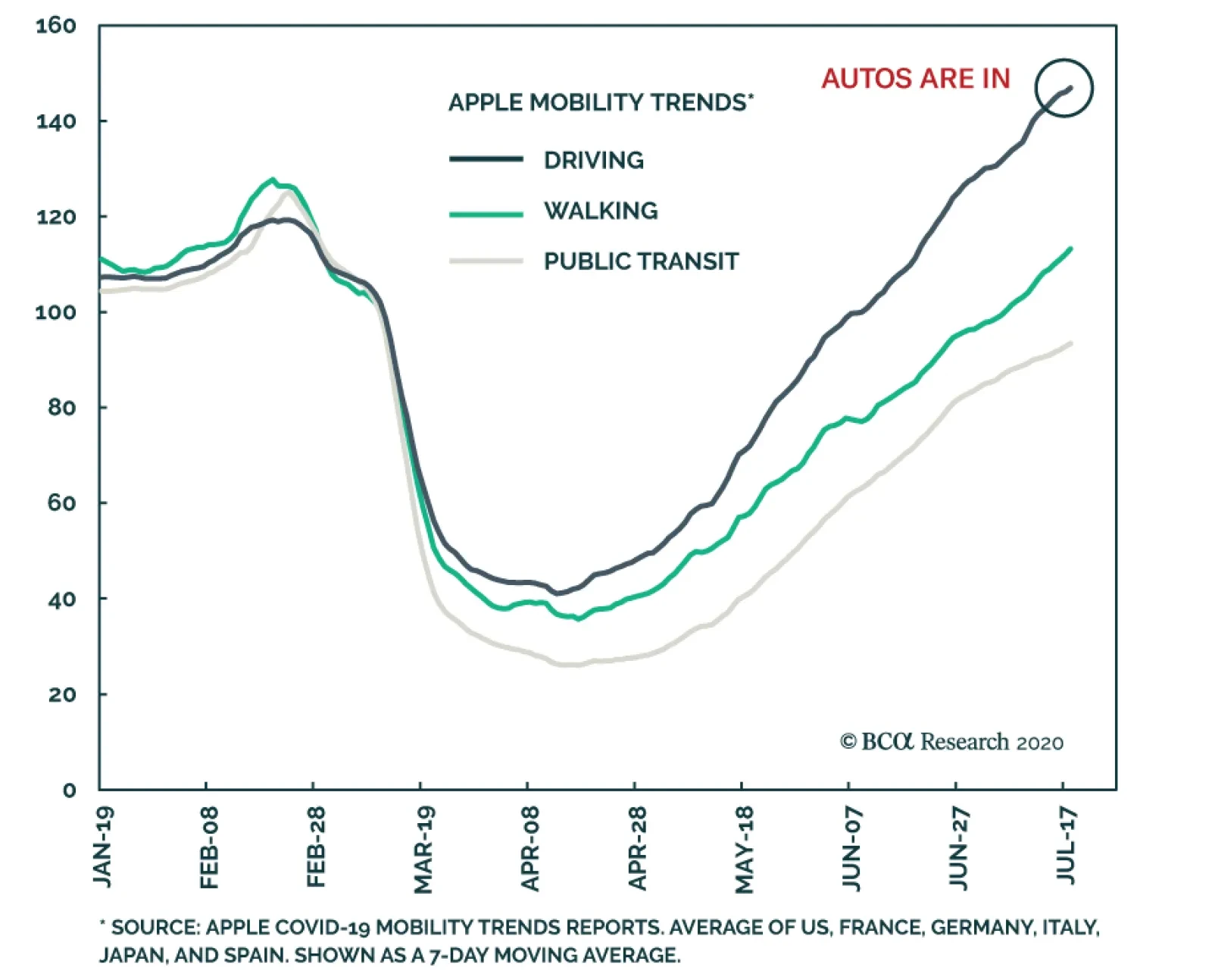 As economies re-open, the mobility of citizens is picking up around the world. According to Apple Mobility data, while people are walking more than they did prior to the pandemic, they are using public transportation significantly less. This is unsurprising,…