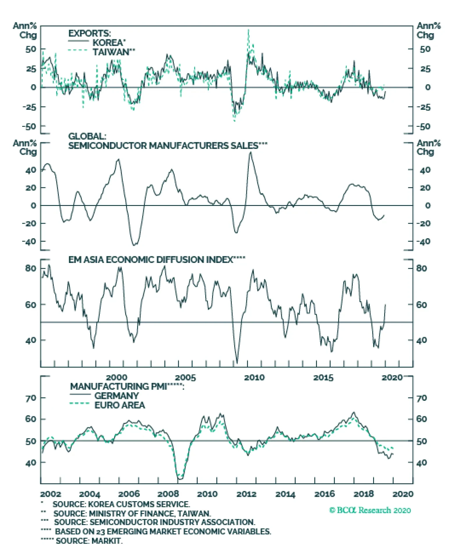 Highlights Global growth is poised to accelerate this year, although the spread of the coronavirus could dampen spending in the very short term. History suggests that the likelihood of a recession rises when unemployment falls to very low levels. Three channels have been proposed to explain why that is: 1) Low unemployment can prompt households and businesses to overextend themselves, making the economy more fragile; 2) Faster wage growth stemming from a tight labor market can compress profit margins, leading to less capital spending and hiring; 3) Shrinking spare capacity can fuel inflation, forcing central banks to raise rates. The first channel is highly relevant for some smaller, developed economies where housing bubbles have formed and household debt has reached very high levels. However, it is not an immediate concern in the US, Japan, and most of the euro area. We would downplay the importance of the second channel, as faster wage growth is also likely to raise aggregate demand and incentivize firms to increase capital spending on labor-saving technologies. The third channel poses the greatest long-term risk, but is unlikely to be market-relevant this year. Investors should remain bullish on global equities over the next 12-to-18 months. A more prudent stance will be warranted starting in the second half of 2021. Global Equities: Sticking With Bullish Global equities are vulnerable to a short-term correction after having gained 16% since their August lows. Nevertheless, we continue to maintain a positive outlook on stocks for the next 12 months due to our expectation that global growth will gather steam over the course of the year. The latest data on global manufacturing activity has generally been supportive of our constructive thesis. The New York Fed Manufacturing PMI beat expectations, while the Philly Fed PMI jumped nearly 15 points to the highest level in eight months. The business outlook (six months ahead) component of the Philly Fed index rose to its best level since May 2018. European manufacturing should also improve this year. Growth expectations for Germany in the ZEW index surged in January, rising to the highest level since July 2015 (Chart 1). The Sentix and IFO indices have also moved higher. Encouragingly, euro area car registrations rose by 22% year-over-year in December. In the UK, business confidence in the CBI survey of manufacturers surged from -44 in Q3 of 2019 to +23 in Q4, the largest increase in the 62-year history of the survey. Fiscal stimulus and diminished risk of a disorderly Brexit should also bolster growth this year. Chart 1Some Green Shoots Emerging In The Euro Area