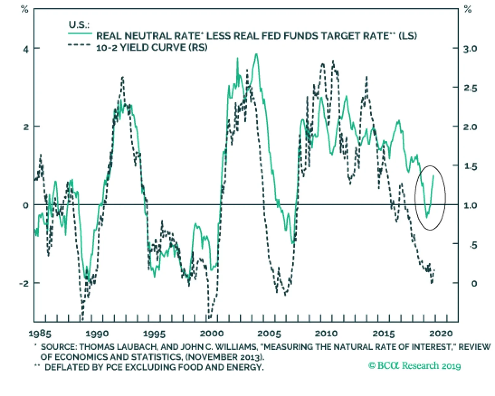 The DXY index has been trading within a very narrow band this year, defined by the upward-sloped channel drawn from the February lows (Chart I-1). At 97, the DXY index is just a few ticks away from the lower bound of this channel, which could be tested in the coming weeks. A decisive break below will represent an important fundamental shift, since it will declare the winner in the ongoing battle between deteriorating global growth and easing financial conditions. Global Growth And The Dollar One of the defining features of the currency landscape last year was that U.S. interest rates became too tight relative to underlying conditions. This tightened dollar liquidity both domestically and abroad. Chart I-2 plots the neutral rate of interest in the U.S. relative to the fed funds target rate. A widening gap suggests underlying financing conditions are low relative to the potential growth rate of the economy. Not surprisingly, this also tends to track the yield curve pretty closely, assuming long-term rates are a proxy for the economy’s structural growth rate, while short-term rates reflect borrowing costs. For economic agents, a narrowing spread suggests a rising risk of capital misallocation, as the gap between the cost of capital and return on capital closes. This is most evident for banks through their net interest margins. At the epicenter of this shrinking spread are the Fed’s macroeconomic policies. These include raising interest rates (especially in the face of a trade slowdown) and/or shrinking its balance sheet. These are the very policies that also tend to strengthen the greenback. The result is a rise in the velocity of international U.S. dollars, pushing up offshore rates and lifting the cost of capital for borrowing countries. A widening gap between U.S. neutral rate of interest and fed funds target rate suggests underlying financing conditions are low relative to the potential growth rate of the economy. This has been the backdrop for the dollar for much of the past two years. The good news is that more recently, the Fed has been quick to rectify the situation. The funding crisis among U.S. domestic banks will be resolved through repurchase agreements and a resumption of the Fed's bond purchases. Chart I-3 shows that the interest rate the Fed pays on excess reserves may soon exceed the effective fed funds rate, meaning the liquidity crisis among U.S. banks may soon be over. Correspondingly, banks’ excess reserves should start rising anew. The drop in rates and the easing in funding conditions have been partly sniffed out by a steepening yield curve (Chart I-3, bottom panel). This will incentivize banks to lend, which in turn, will boost U.S. money supply. As the economy recovers and demand for imports (machinery, commodities, consumer goods) rises, this will widen the current account deficit and increase the international supply of dollars. This should further calm dollar offshore rates, helping short-circuit any negative feedback loops that might have hampered growth in the past. Chart I-2The Fed Has Pivoted