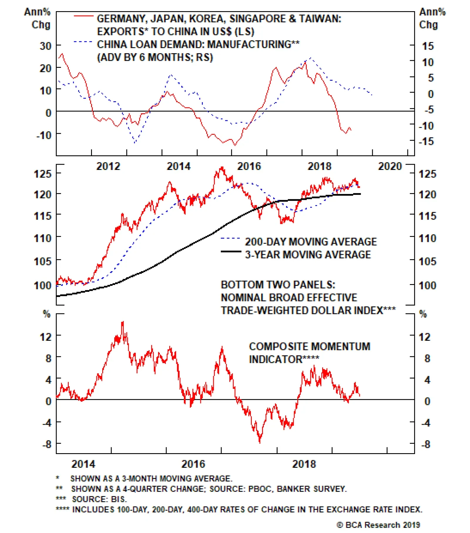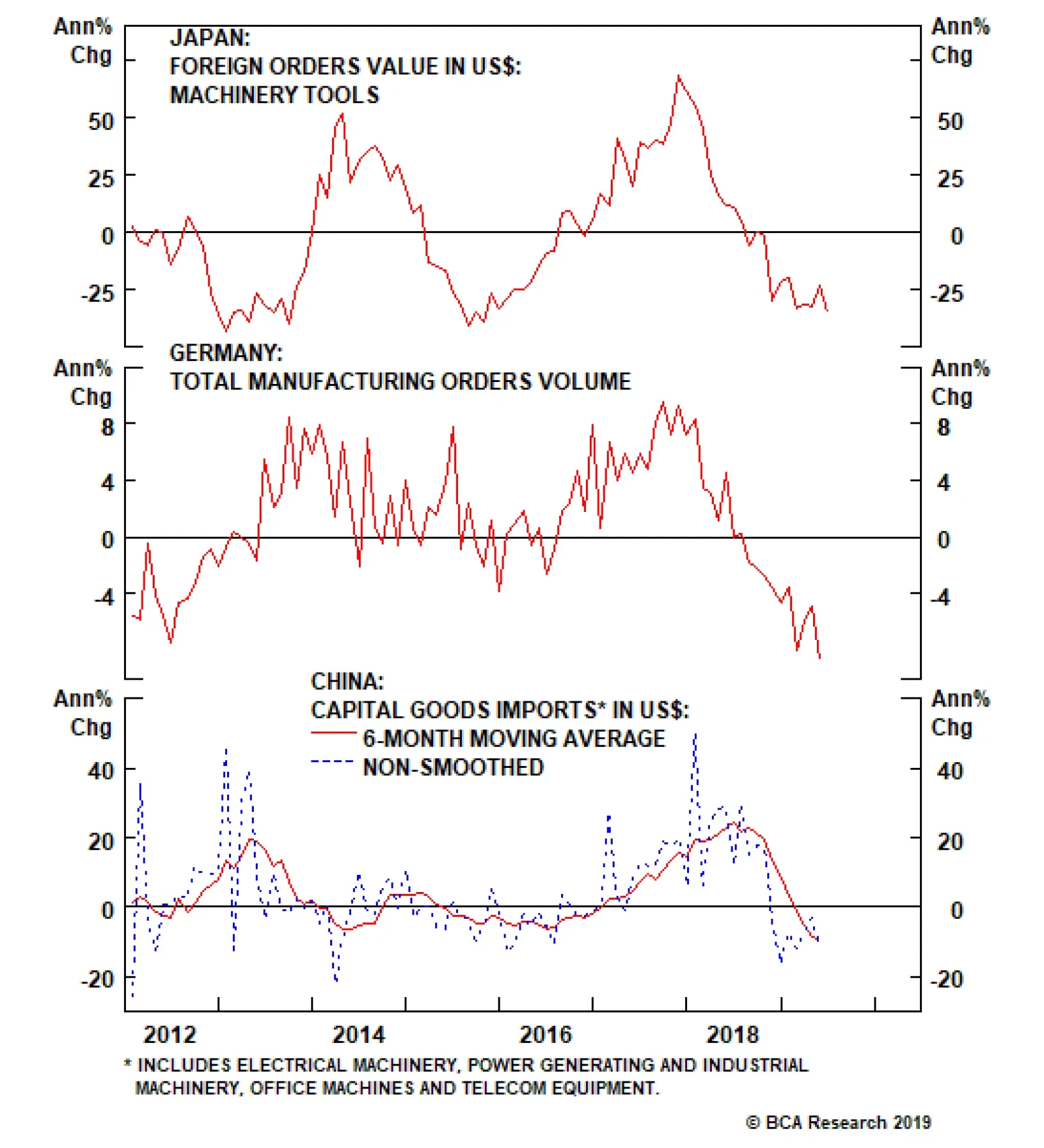 Dear Client, In lieu of next week’s regular report, we will be bringing you a Special Report featuring a no-holds-barred debate over the economic and financial market outlook among three of BCA’s more bullish strategists (Doug Peta, Rob Robis, and yours truly) and three of the more bearish ones (Anastasios Avgeriou, Arthur Budaghyan, and Dhaval Joshi). Best regards, Peter Berezin, Chief Global Strategist Highlights Slowdowns are much more likely to turn into recessions when significant economic and financial imbalances are present. The U.S. does not currently suffer from any of the three major imbalances that have historically heralded recessions – rapid private-sector debt growth; excessive spending in cyclical sectors such as housing, consumer durables, and business capex; or accelerating inflation. Imbalances are larger abroad, but not to the extent that they will trigger a global recession. The combination of ongoing Chinese stimulus and the lagged effect from lower bond yields will lift global growth during the coming months. The inventory cycle, which is likely to subtract at least one full percentage point from U.S. growth in Q2, will also turn from being a headwind to a tailwind. Stay overweight global equities relative to government bonds over the next 12 months. A rebound in global growth will push down the U.S. dollar later this year, creating an opportunity to increase exposure to European and EM equities. Feature Global Growth At A Critical Juncture The global economy has clearly slowed since early 2018 (Chart 1). So far, much of the weakness has been confined to the manufacturing sector. However, the service sector has softened as well (Chart 2). Chart 1The Global Economy Has Slowed...