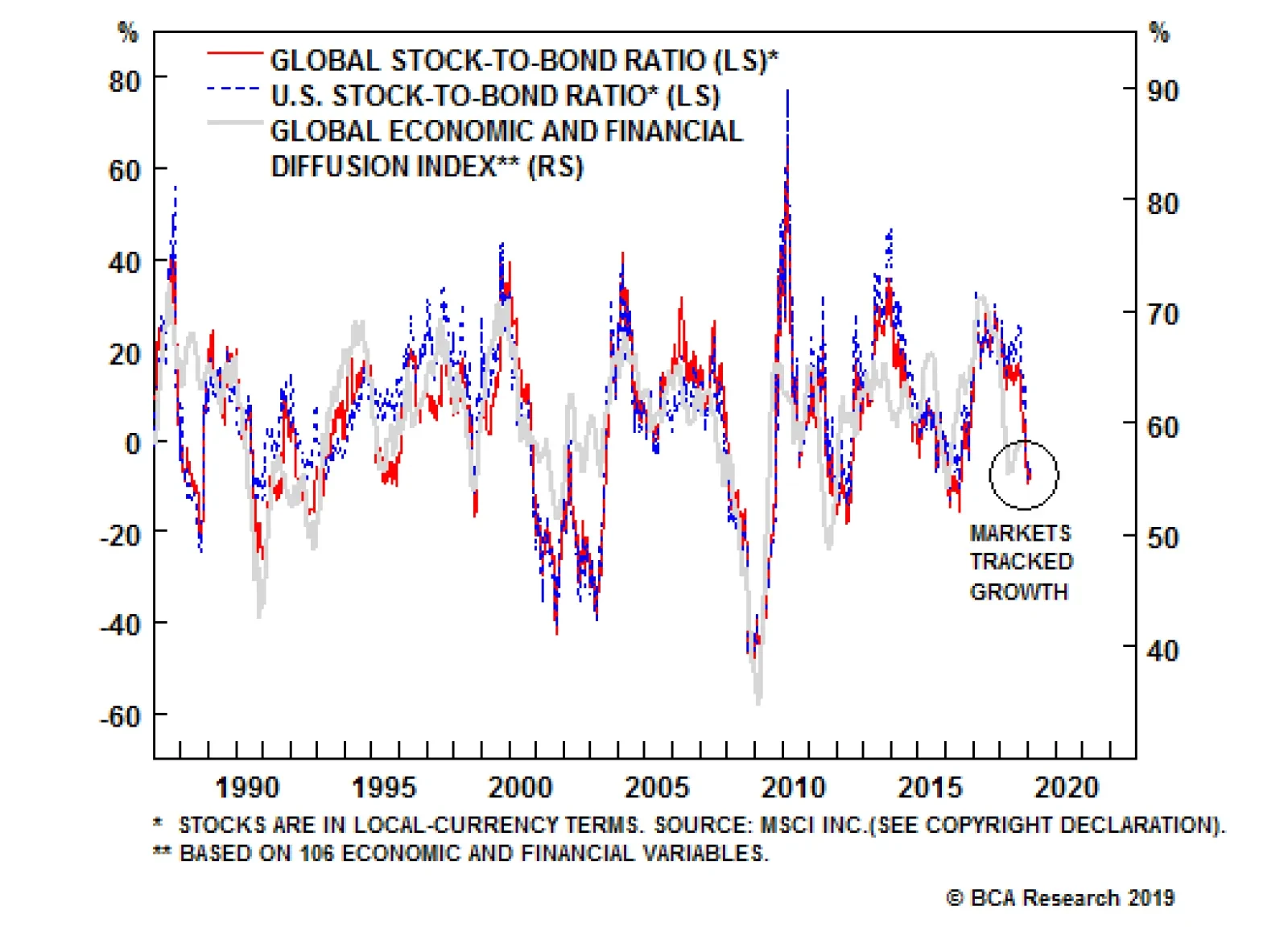 Due to slowing Chinese credit growth and the tightening in global liquidity conditions, global growth has suffered. However, the global and U.S. stock-to-bond ratios, two financial market metrics finely tuned to global economic gyrations, have already fallen…