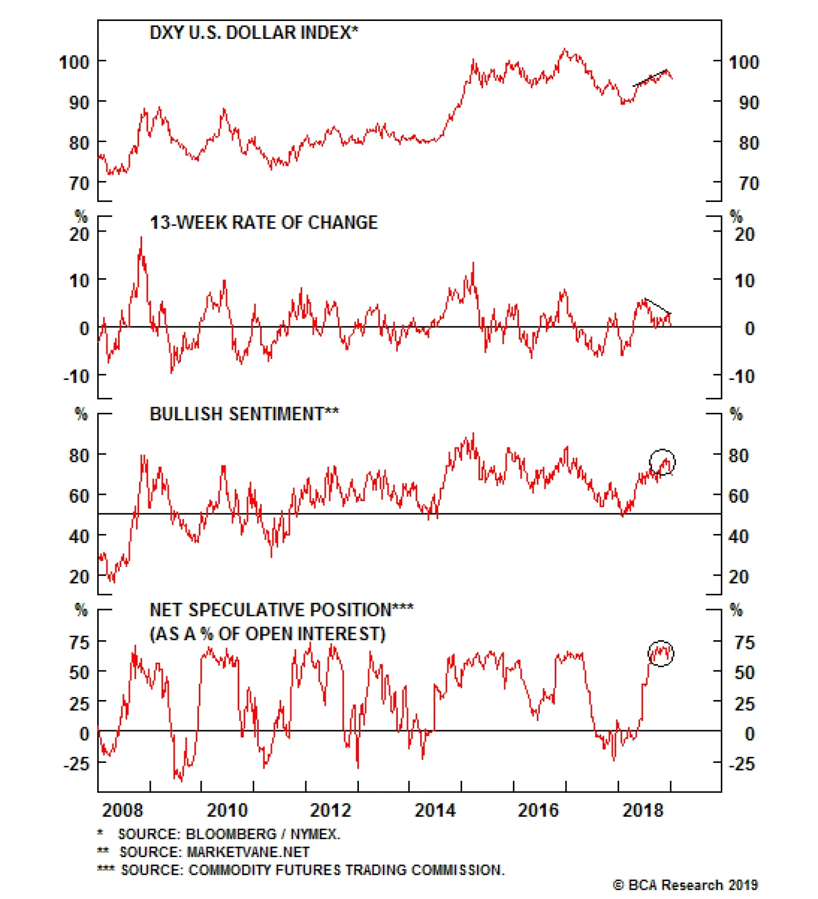Robert P. Ryan, Senior Vice President Commodity & Energy Strategy rryan@bcaresearch.com Hugo Bélanger, Senior Analyst Commodity & Energy Strategy HugoB@bcaresearch.com Pavel Bilyk, Research Analyst Commodity & Energy Strategy PavelB@bcaresearch.com Footnotes 1 Please see “China buys more U.S. soy as officials meet for trade talks,” published by reuters.com January 7, 2019.com. 2 Each of the individual components is standardized to create the WTI composite indicator. We lack CFTC open-interest data to update the open-interest series, due to the U.S. government’s shutdown. 3 This is in line with our expectation, which is contained in our most recent balances and forecast update published last week. Please see “Oil Volatility will Persist; 2019 Brent Forecast Lowered to $80/bbl.” It is available at ces.bcaresearch.com. The World Bank’s latest forecast can be found in its Global Economic Prospects, which is titled “Darkening Skies.” It can be found at http://www.worldbank.org/en/publication/global-economic-prospects. 4 Clive Granger used standard statistics to show information contained in past realizations of one variable can be used to predict another variable’s value. Two-way causality indicates lagged values of both variables contain statistically significant information that allows past realizations of both to be used to predict the other’s value. There is a huge literature on this topic. For an excellent intuitive explanation of Granger causality, please see the discussion beginning on p. 365 of “Time Series Analysis, Cointegration, and Applications,” Clive Granger’s Nobel lecture delivered December 8, 2003 (https://www.nobelprize.org/uploads/2018/06/granger-lecture.pdf). 5 Please see “All Fall Down: Vertigo In The Oil Market ... Lowering 2019 Brent Forecast To $82/bbl,” published by BCA Research’s Commodity & Energy Strategy November 15, 2018. It is available at ces.bcaresearch.com. 6 We would not be at all surprised if OPEC 2.0 overdelivered on production cuts, as it did in 2017 – 1H18. 7 Relative total return (carry included) of four equally weighted EM (ZAR, RUB, BRL and CLP) and three DM (AUD, NZD and CAD) commodities currencies versus an equally weighted average of two safe-haven currencies - the Japanese yen and Swiss franc. 8 These gold ratios are discussed in detail in “Gold Ratios Wave Off ‘Red October’ … Iran Export Waivers Highlight Tight Market,” published by BCA Research’s Commodity & Energy Strategy November 8, 2018. It is available at ces.bcaresearch.com. 9 For in-depth discussions of these models and our general approach to modeling EM trade volumes, please see “Trade, Dollars, Oil & Metals … Assessing Downside Risk,” published by BCA Research’s Commodity & Energy Strategy August 23, 2018. It is available at ces.bcaresearch.com. Investment Views and Themes Recommendations Strategic Recommendations Trade Recommendation Performance In 4Q18
