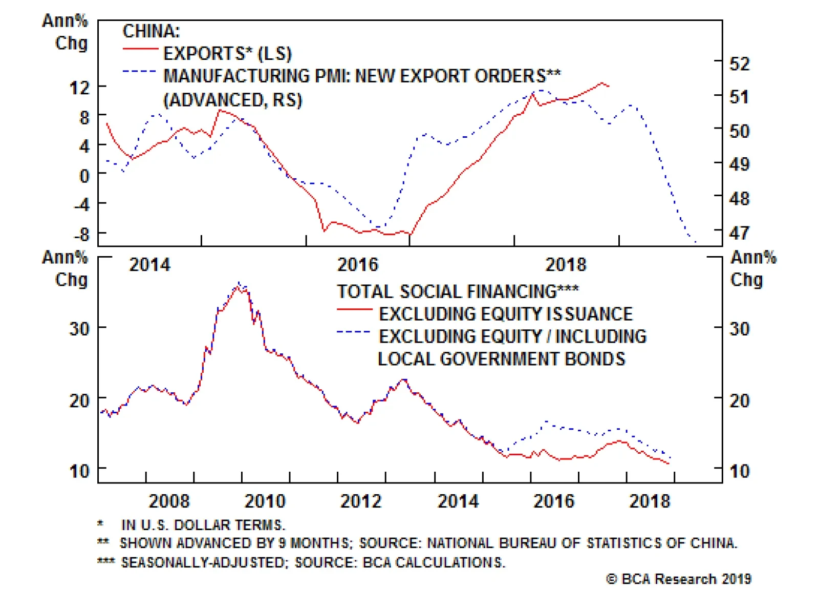 Highlights EM equity and credit outperformance versus the U.S. in the past three months was an aberration in the cyclical and structural downtrend. Hence, the recent outperformance of EM assets provides a good entry point for investors to short EM/China assets against their U.S. counterparts. In our opinion, this strategy will work in the coming months regardless of whether global risk assets rebound or sell off – i.e., they are not dependent on market direction. Feature The fourth quarter of 2018 was marked by a precipitous plunge in global equities, led by the U.S. In the meantime, EM stocks have outperformed the global equity benchmark in the past three months. Will EM and U.S. stocks trade places again, or will EM continue to outperform U.S. and DM equities? By the end of December, global share prices had become extremely oversold, and investor sentiment was downbeat. A trifecta of confidence-boosting developments – the rapprochement between the U.S. and China in trade negotiations, the announcement of more policy stimulus in China and reassurances from Federal Reserve Chairman Jerome Powell that monetary policy tightening is not predetermined – have since led to a rebound in global stocks. A key question for asset allocators heading into 2019 is: Will EM continue to outperform the global equity index in this rebound? We do not think so. The odds are considerable that EM will resume its underperformance versus DM in general and the U.S. in particular. The fundamental rationale for staying bearish on EM is that global trade and manufacturing remain on a downward trajectory. Chart I-1 illustrates that EM risk assets sell off when global trade is slowing, especially when the weakness stems from China. Chart I-1EM Selloff Has Been Due To Slowdown In China