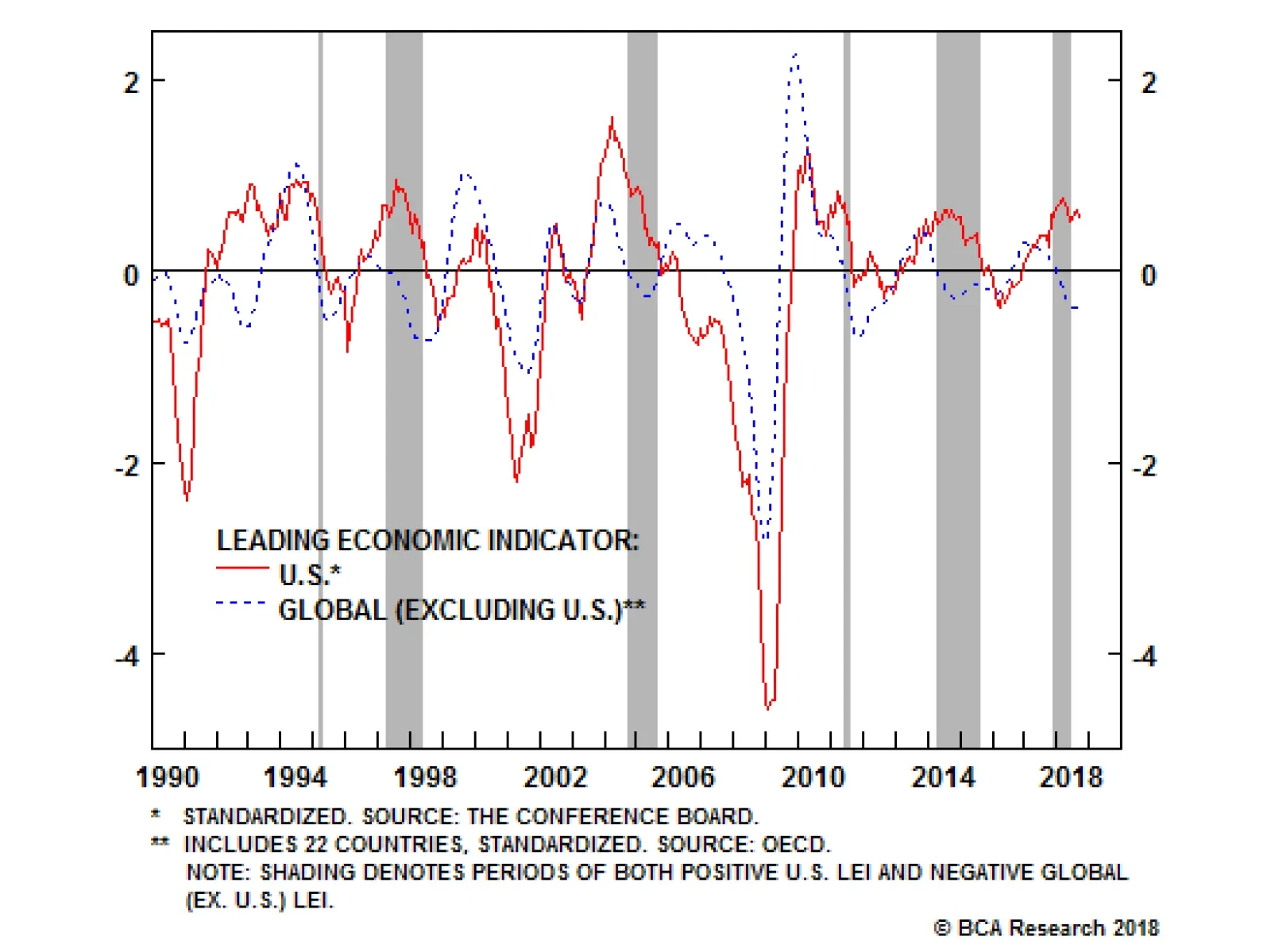 Current trends in the leading indicators shown in Chart 11 imply that the growth divergence between the U.S. and the rest of the world will remain a key theme well into 2019. Among the advanced economies, Europe and Japan are quite vulnerable to the global soft patch in trade and capital spending. Chart 11Global Economic Divergence Will Continue