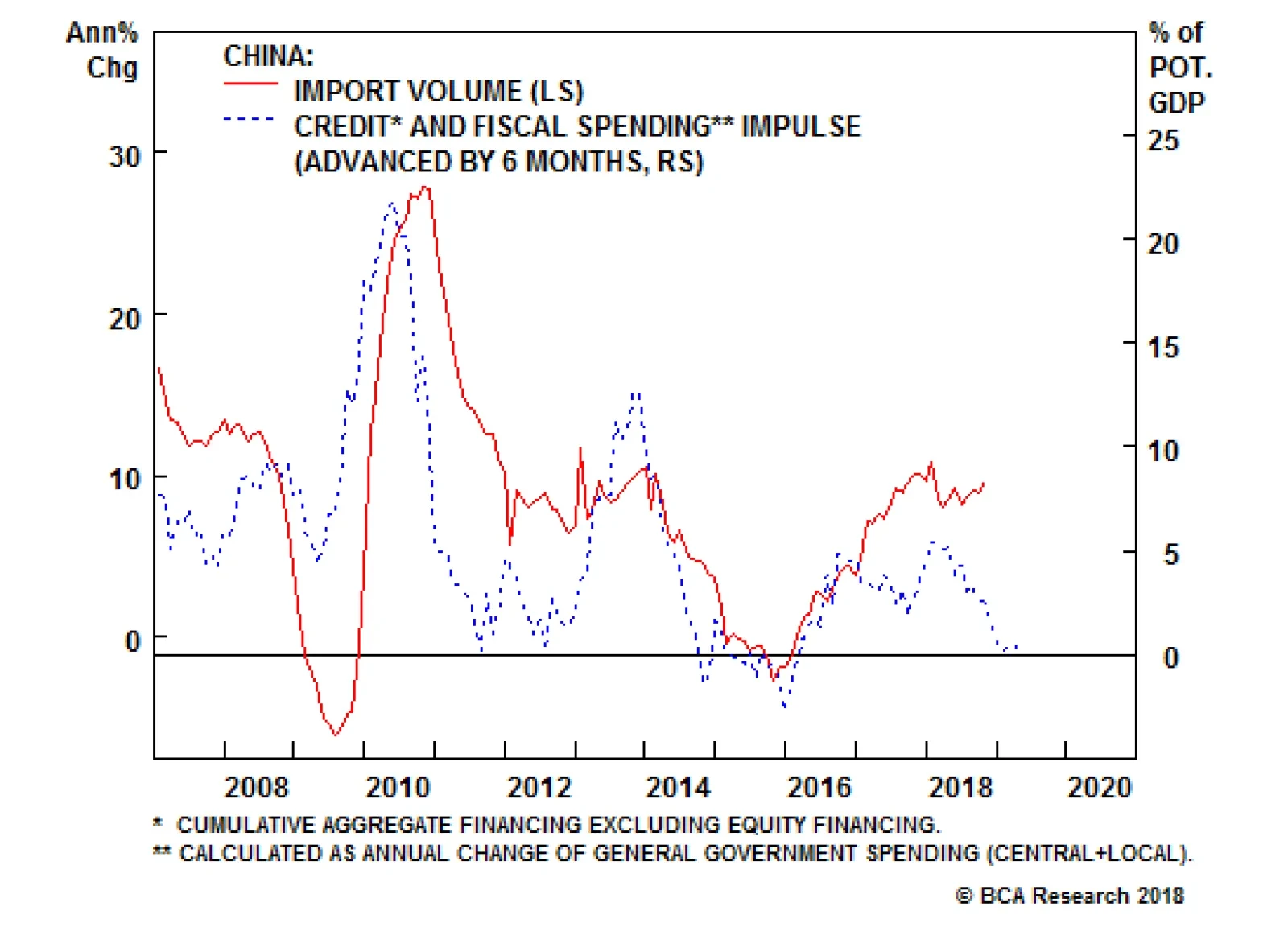 It is also true that Chinese policy makers have been trying to limit the downside to growth. They have injected liquidity in the banking system, let the renminbi depreciate, and allegedly, supported a stock market spiraling downward under the pressure of margin calls. Moreover, fiscal policy is being eased, with income tax cuts pointing to a desire to support household consumption, especially spending on services. But none of these policy actions seems to matter for the world economy, at least for now. China impacts global growth through its imports, and non-food commodities, investment goods, machinery equipment and transportation goods constitute 85% of total Chinese imports. These goods are levered to industrial activity and the Chinese investment cycle. The latter in turn is levered to the Chinese credit cycle (Chart I-2). Hence, as long as China tries to reign in credit growth, Chinese imports will be under pressure. Chart I-2Slowing Chinese Credit Impulse Means Slower Chinese Imports