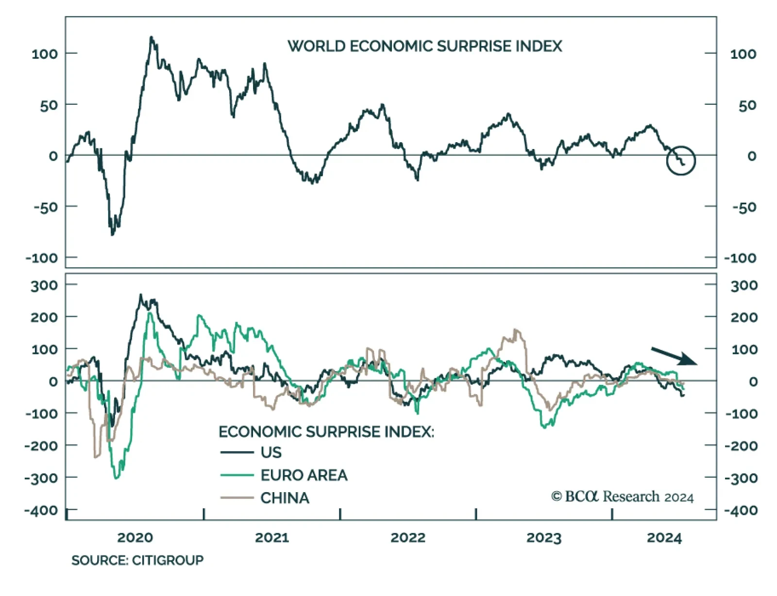 After having peaked in mid-April, Citigroup’s global economic surprise index has been in negative territory for the past few weeks. The sub-zero reading indicates that economic data have been surprising to the downside and…