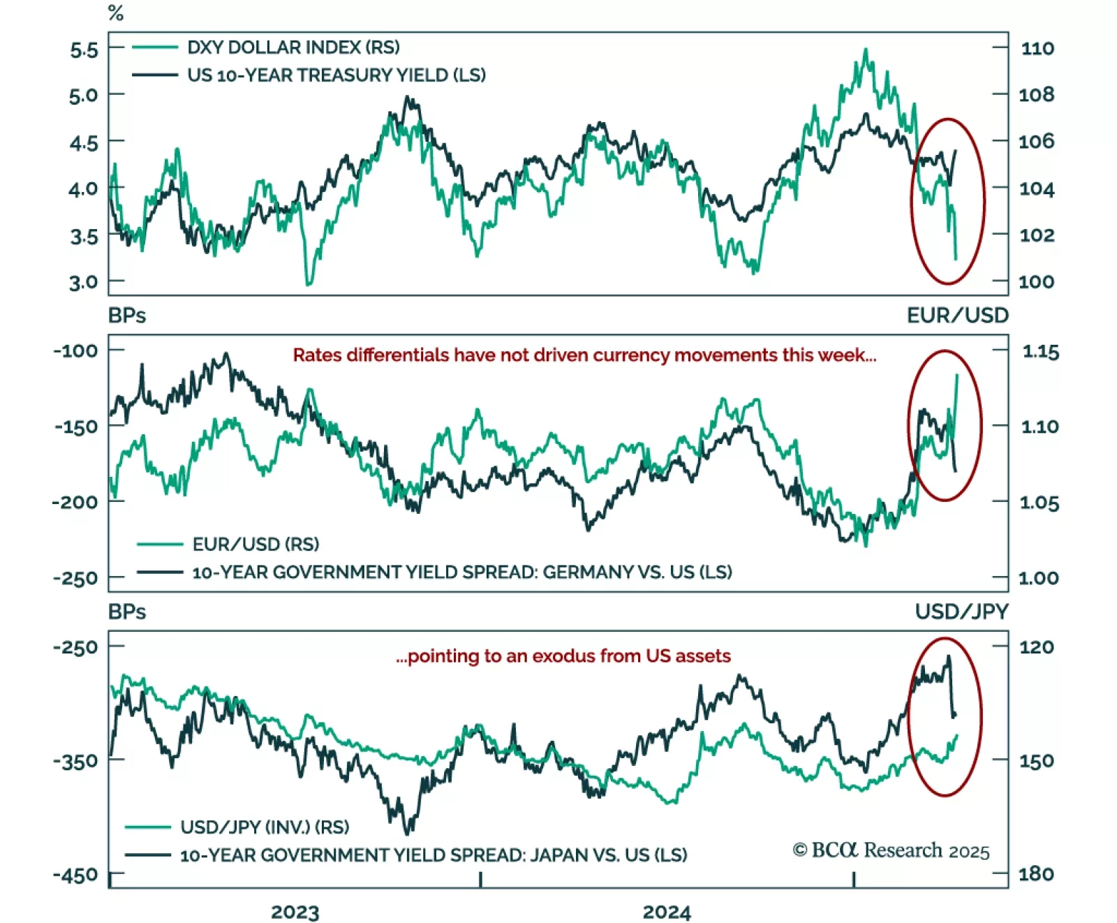 Our GeoMacro strategists recommend positioning for an exodus out of US assets, with long exposure to gold, the yen, and the Canadian dollar. April 2, “Liberation Day,” is likely to mark the peak in de-globalization hysteria, as the…