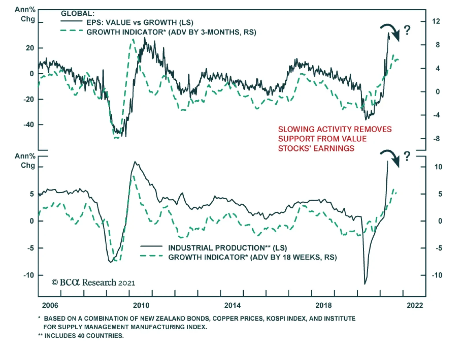 BCA Research’s Global Growth Indicator, which is based on the price of copper, Korean equities, Kiwi bonds and the US ISM manufacturing index, is sending a warning to value stocks. Its latest readings have ticked down from the late-March peak, suggesting that…