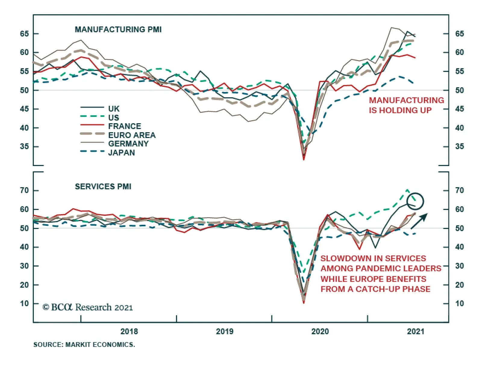 Dear Client, We are sending you our Strategy Outlook today, where we outline our thoughts on the macro landscape and the direction of financial markets for the rest of 2021 and beyond. Next week, please join me for a webcast on Thursday, July 8 at 10:00 AM EDT (3:00 PM BST, 4:00 PM CEST, 10:00 PM HKT) where I will discuss the outlook. Best regards, Peter Berezin, Chief Global Strategist Highlights Macroeconomic Outlook: Global growth is peaking but will remain solidly above trend. While the proliferation of the Delta strain is likely to trigger another wave of Covid cases this summer, the economic impact will be far smaller than during past waves. Global Asset Allocation: The risk-reward profile for stocks has deteriorated since the start of the year. Nevertheless, with few signs that the global economy is heading towards another major downturn, investors should maintain a modest equity overweight on a 12-month horizon. Equities: Favor cyclicals, value-oriented, and non-US equities. Emerging markets should spring back to life in the autumn once vaccine supplies increase and Chinese fiscal policy turns more stimulative. Fixed Income: Maintain below average interest-rate duration exposure. The 10-year US Treasury yield will finish the year at 1.9%. Spread product will continue to outperform high quality government bonds. Currencies: The US dollar will resume its weakening trend as growth momentum rotates from the US to the rest of the world. EUR/USD will finish the year at 1.25. Commodities: Brent will rise to $79/bbl by end-2021, 9% above current market expectations. While the lagged effects from the slowdown in Chinese credit growth earlier this year will weigh on base metals during the summer months, the long-term outlook for metals is positive. Favor gold over cryptos as an inflation hedge. I. Macroeconomic Outlook Global Vaccination Campaign Kicks Into High Gear Nearly 18 months after the pandemic began, the global economy is on the mend. In its latest round of forecasts released on May 31st, the OECD projects that the global economy will expand by 5.8% this year, up from its March projection of 5.6%. The OECD also bumped up its growth forecast for 2022 from 4% to 4.4%. After a rough start, the vaccination campaign is progressing well in most advanced economies (Chart 1). The US and the UK were the first major developed economies to roll out the vaccines, followed by Canada and the EU. While Japan has lagged behind, the pace of vaccinations has picked up lately. Twenty percent of the Japanese population has now received at least one dose. Developing economies are still struggling to secure enough vaccines. Fortunately, this problem should abate over the next six months. The Global Health Innovation Center at Duke University estimates that pharmaceutical companies are on track to produce more than 10 billion vaccine doses this year (Chart 2). While perhaps not enough to inoculate everyone who wants a jab, it will suffice in providing protection to the most vulnerable members of society – the elderly and those with pre-existing medical conditions. Chart 1The Vaccination Campaign Is Progressing Well In Most Developed Economies