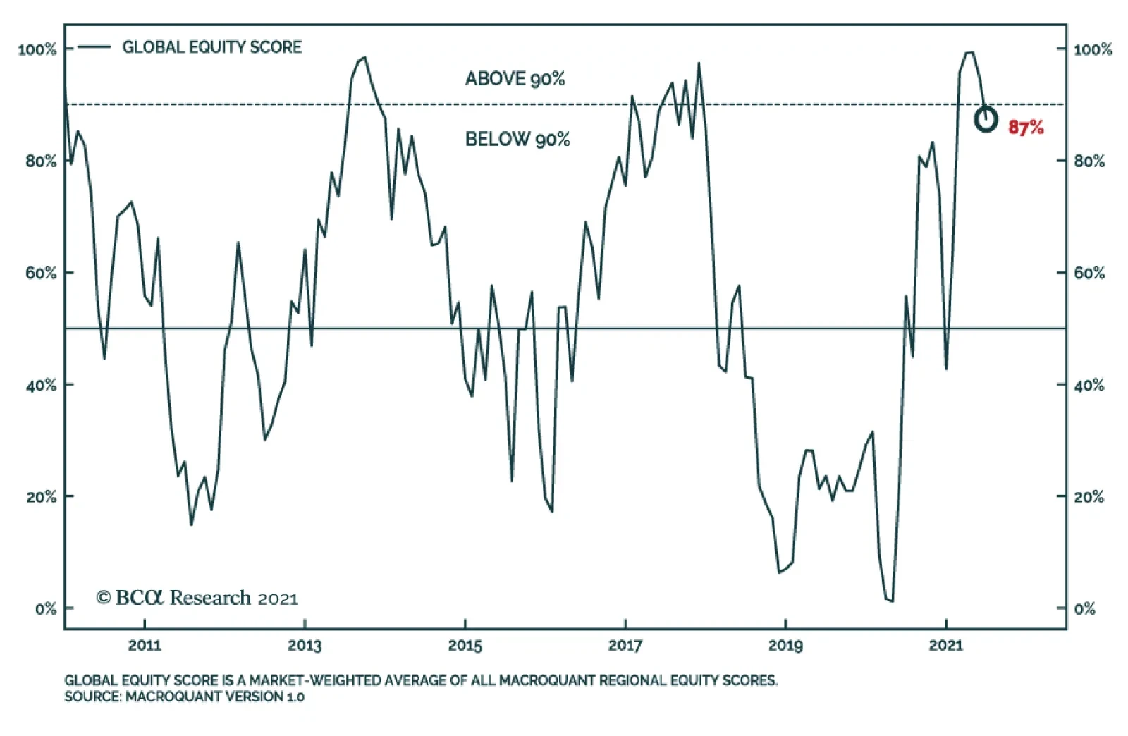 The MacroQuant global equity score is a market-weighted composite of all the regional equity scores within the model. It ranges between 0% and 100%, with 0% being most bearish and 100% being most bullish. Read the full details on MacroQuant in the recently…