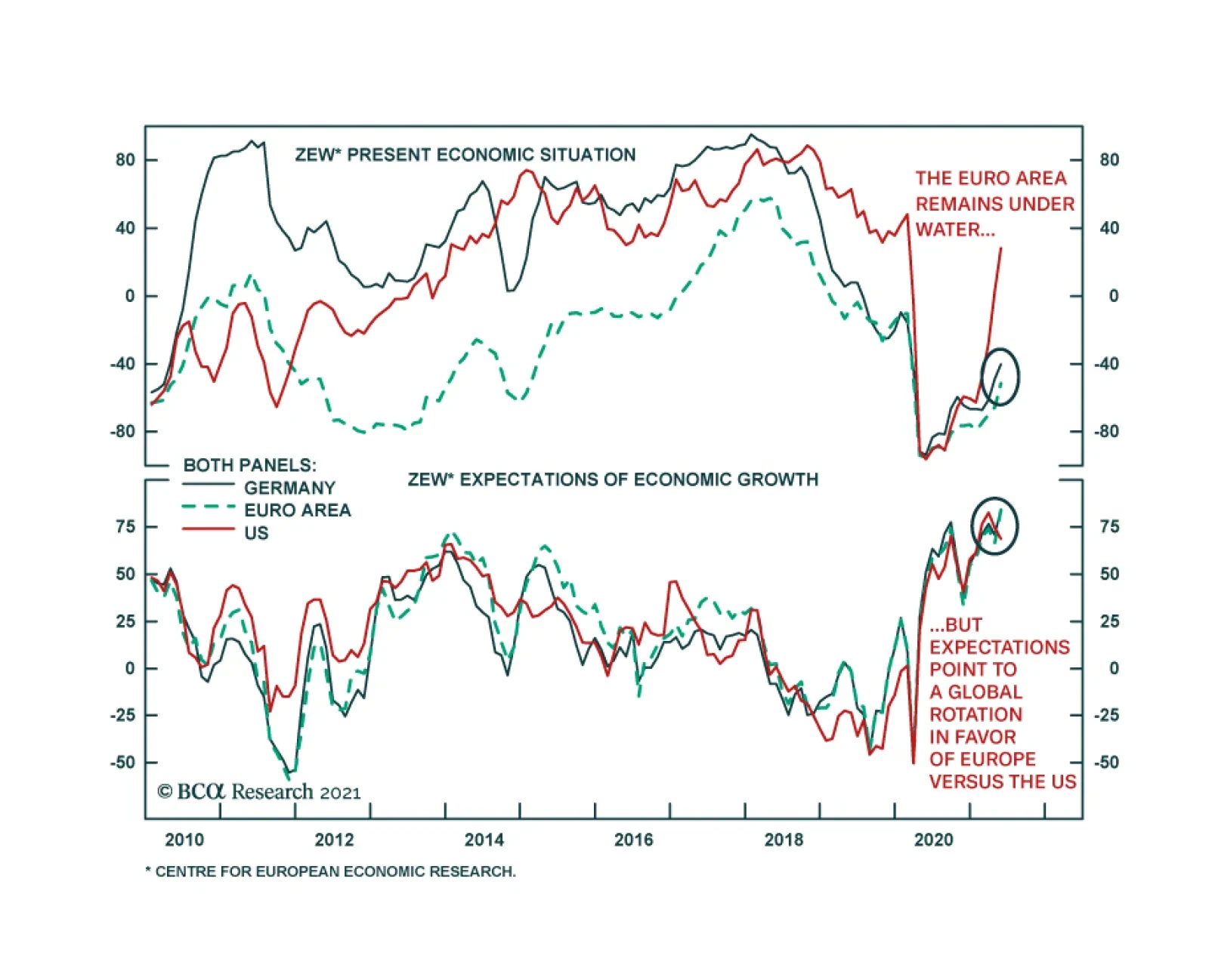 The German ZEW survey for May sent a positive message for the Euro Area recovery. Even though Germany’s current situation component remains in negative territory, it rose 8.7 points from the April reading. More notably, the economic expectations component…