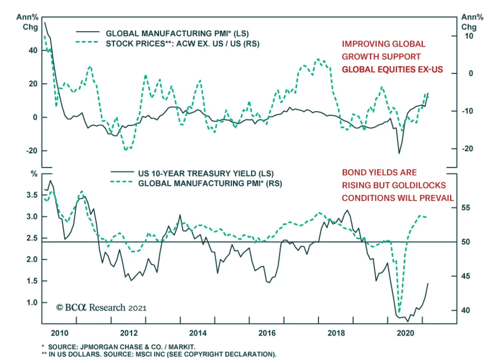 As we discussed in February, there are numerous similarities between the present environment and the mid-1960s. This suggests that inflation could surprise significantly to the upside in the middle of the decade, even if it is slow to get off the ground over the next few years. Remain Overweight Stocks Over A 12-Month Horizon Stocks usually rise when growth is strong and monetary policy is accommodative (Chart 10). While bond yields in the US and most other economies will trend higher, they will remain below their equilibrium level for at least the next two years. Chart 10Stocks Do Well When The Economy Does Well