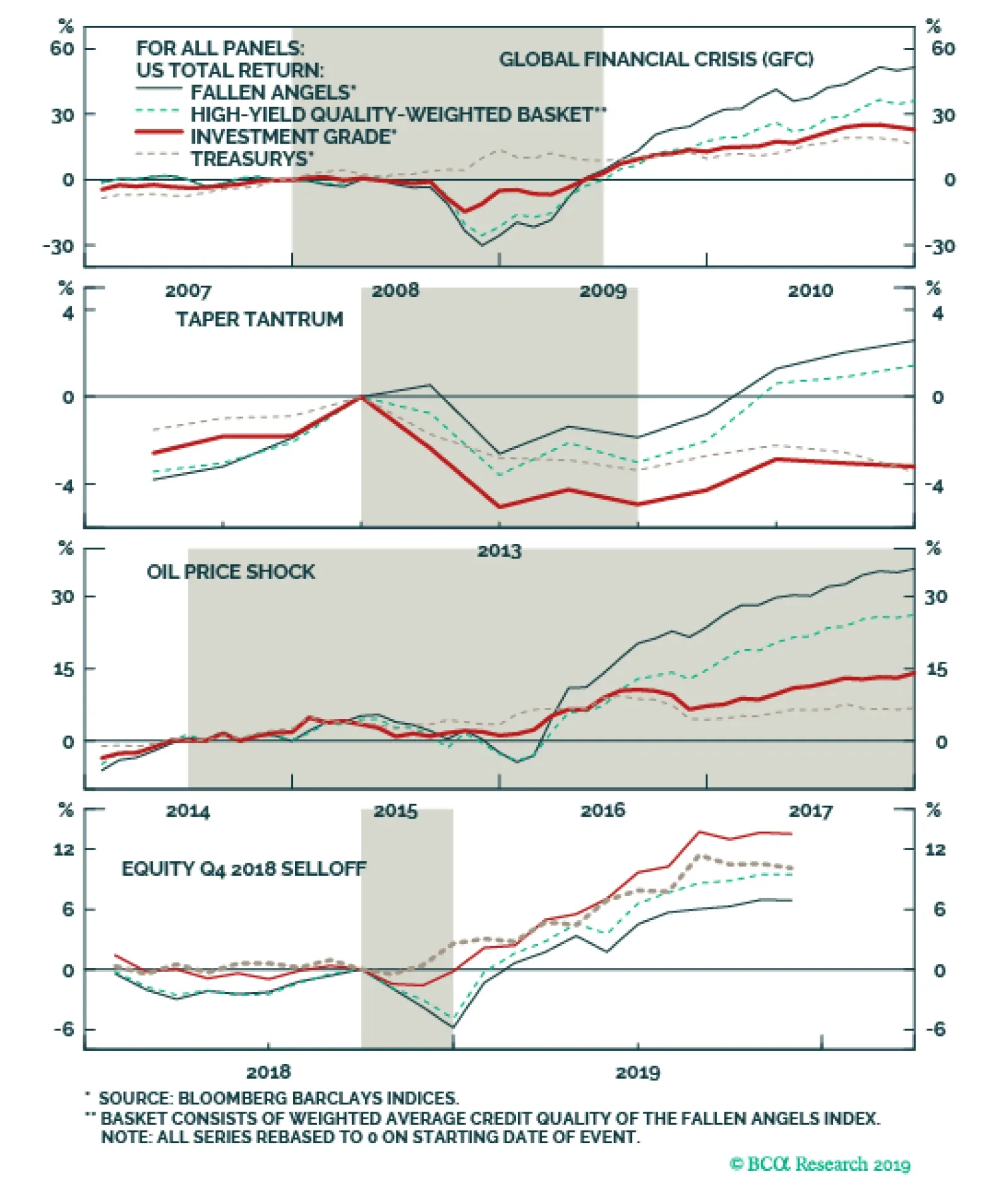 On average, fallen angels outperform other types of bonds. But how do they perform during recessions and other periods of financial market stress? Given the Bloomberg Barclays US High Yield Fallen Angel 3% Capped Bond index…