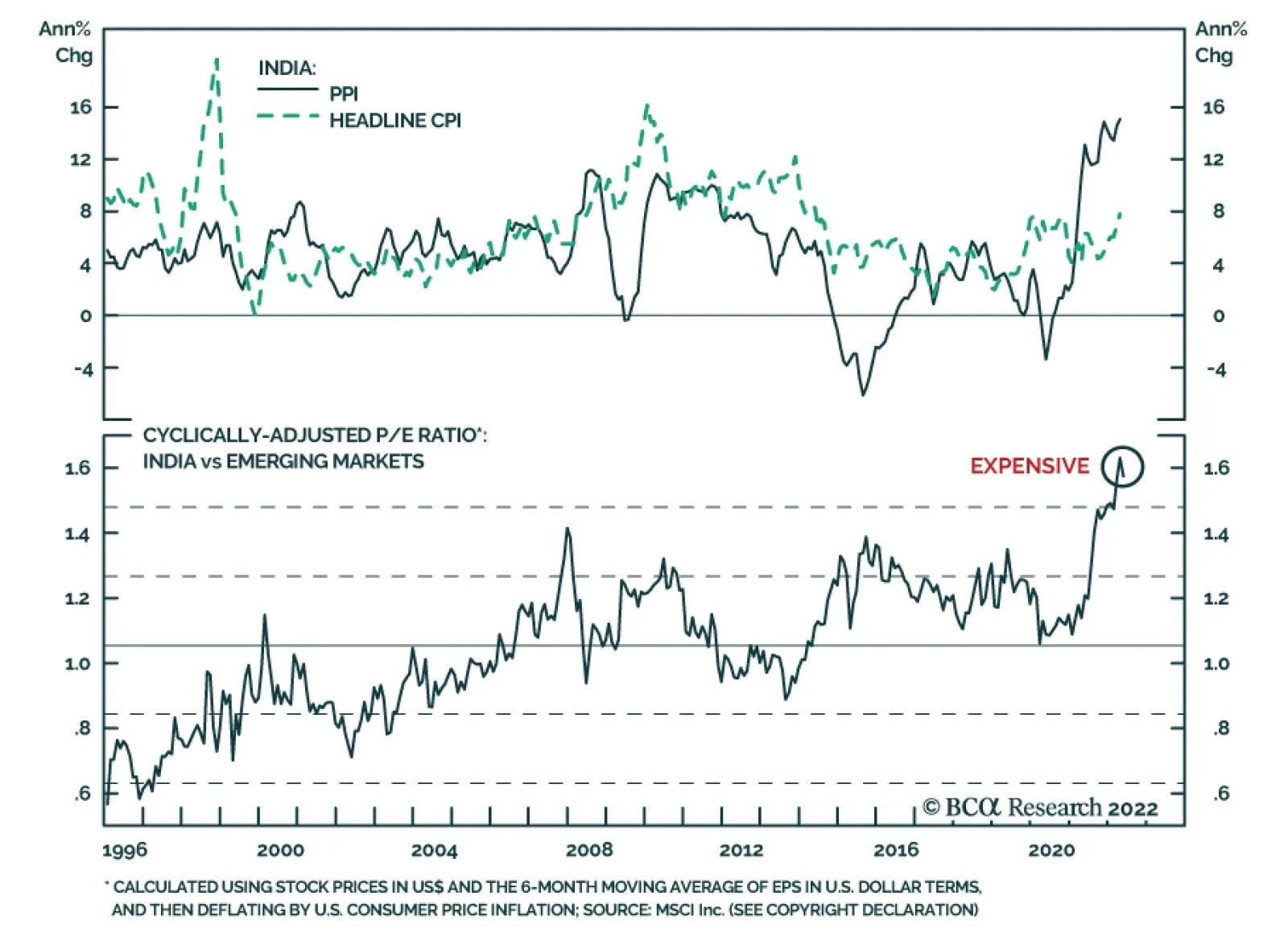 According to BCA Research’s Emerging Markets Strategy service, downshifting profit growth expectations and rising interest rates herald a meaningful derating of Indian equities in both absolute terms and relative to their…