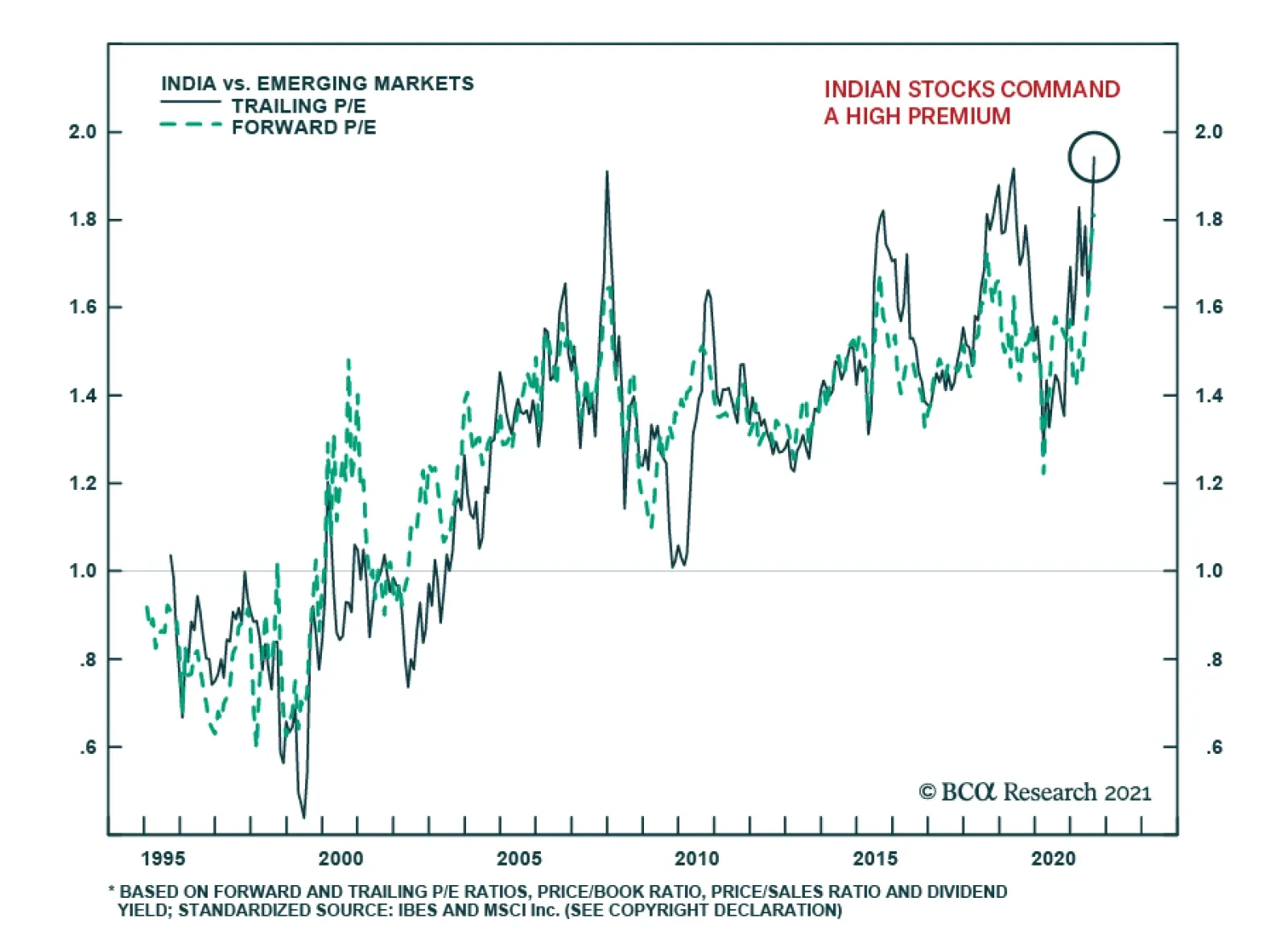 BCA Research's Emerging Market Strategy service concludes that the Indian bourse's structurally high premium relative to EM will likely continue. With a trailing P/E of 31, and P/Book of 3.9, there is no doubt that…