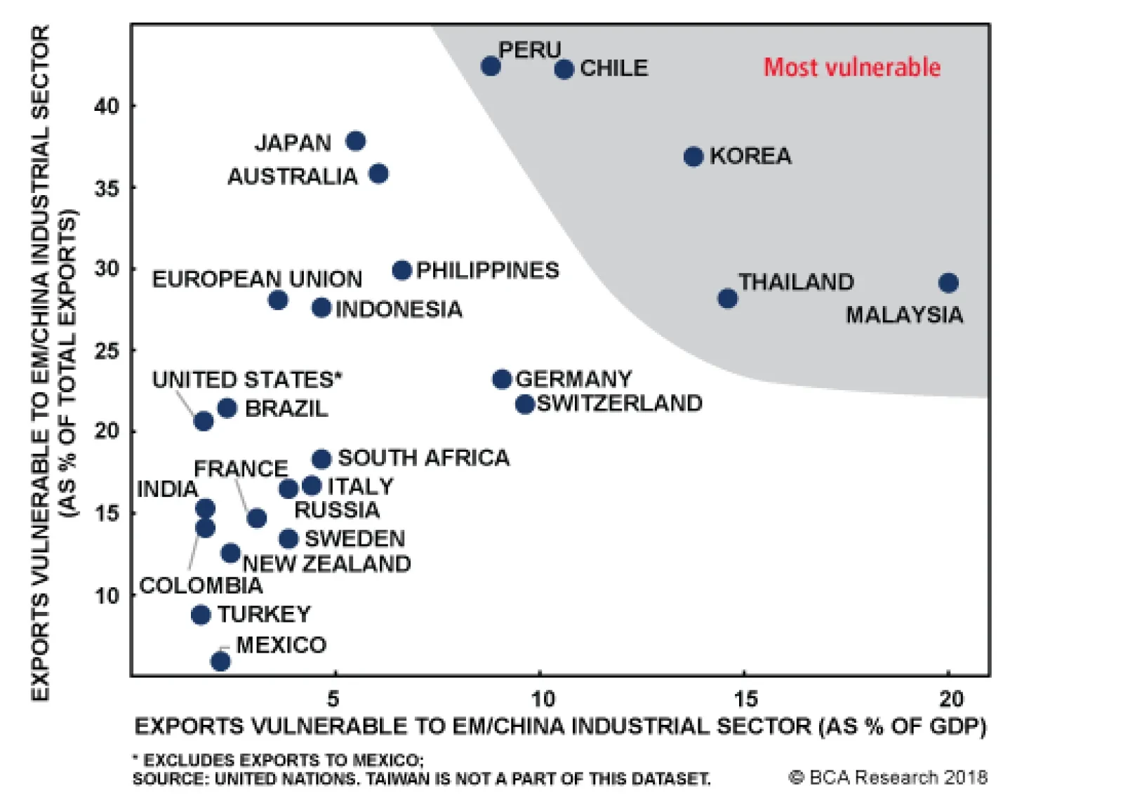 Their analysis takes into account not only the destinations of shipments but also the types of goods with the focus on identifying the size of the exports that are susceptible to an EM/China industrial slowdown. The chart above…