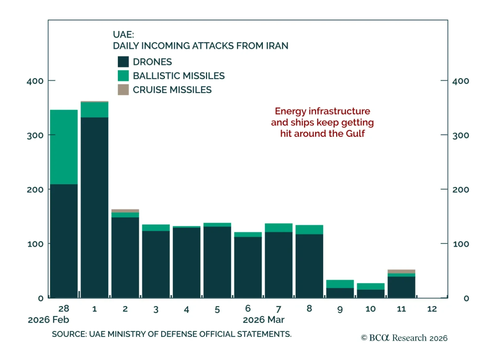 The conflict in the Middle East persists as the US and Israel keep striking at Iranian military and internal security sites, and Iran has responded with its own missiles and drones against the Gulf States. Although the pace of Iranian retaliation has declined, it appears to have stabilized, as evidenced by attacks against the UAE.