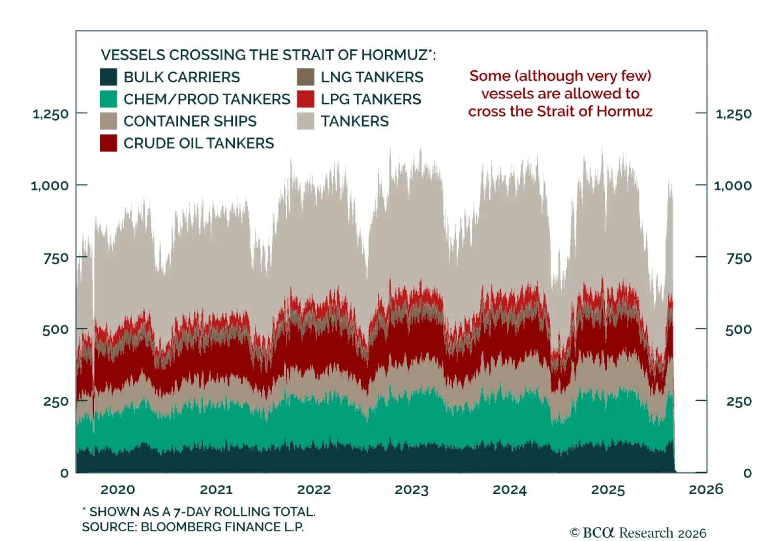 Investors are too complacent on the closure of the Strait of Hormuz. Upgrade cash and downgrade equities, both to neutral.