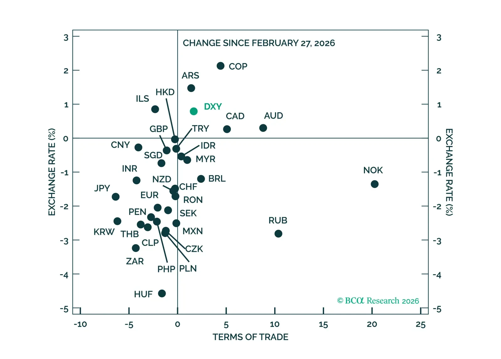 The Iran war remains a terms-of-trade shock rather than a classic flight to safety – for now. As oil risks skew higher, policy repricing and growth differentials should continue to favor a tactical rebound in the USD.