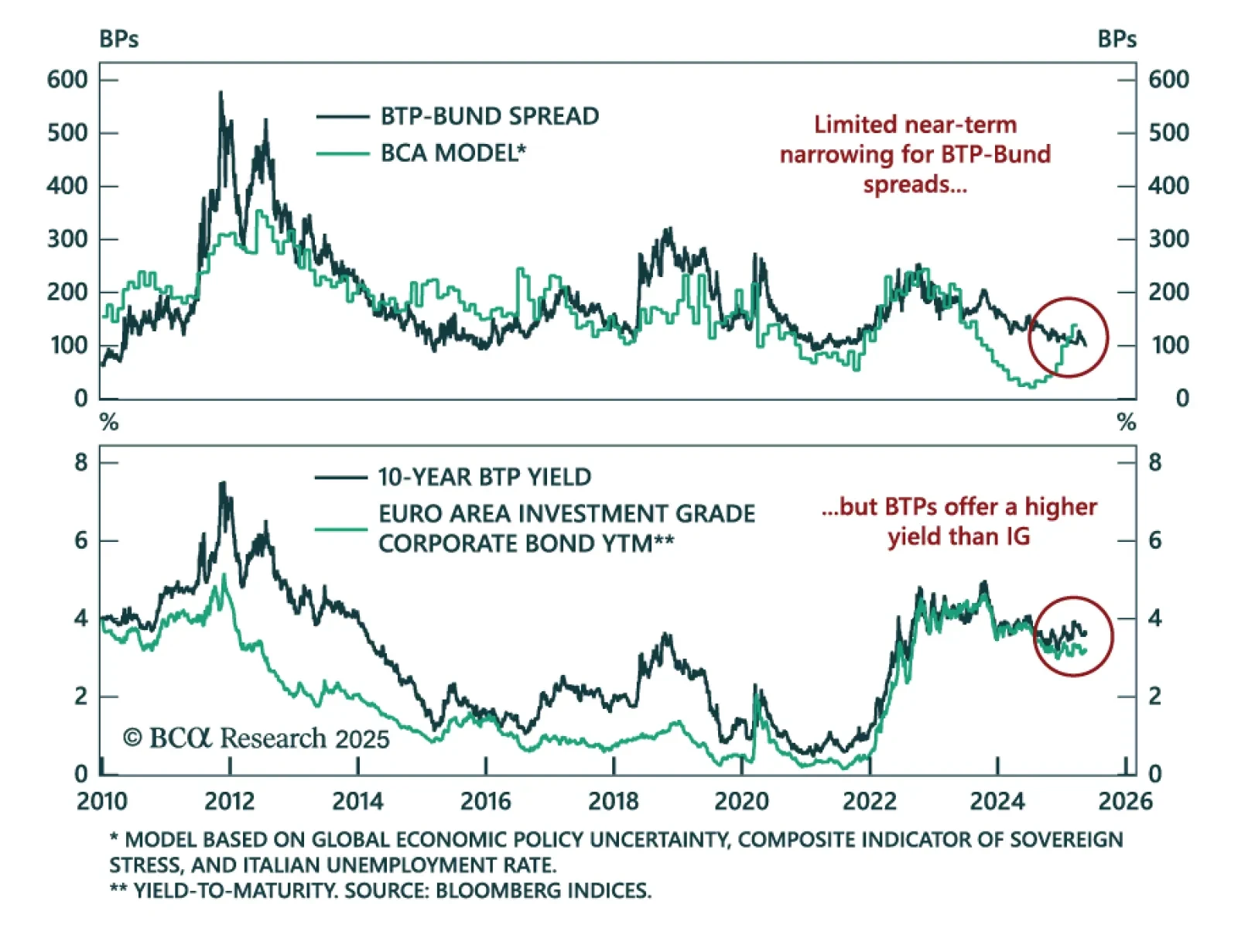 The European bond market is pricing in a more optimistic outlook. The BTP-Bund spreads have narrowed 30bps since April 9 and are now within reach of their pre-Ukraine war level. BCA’s European strategists do not share this…