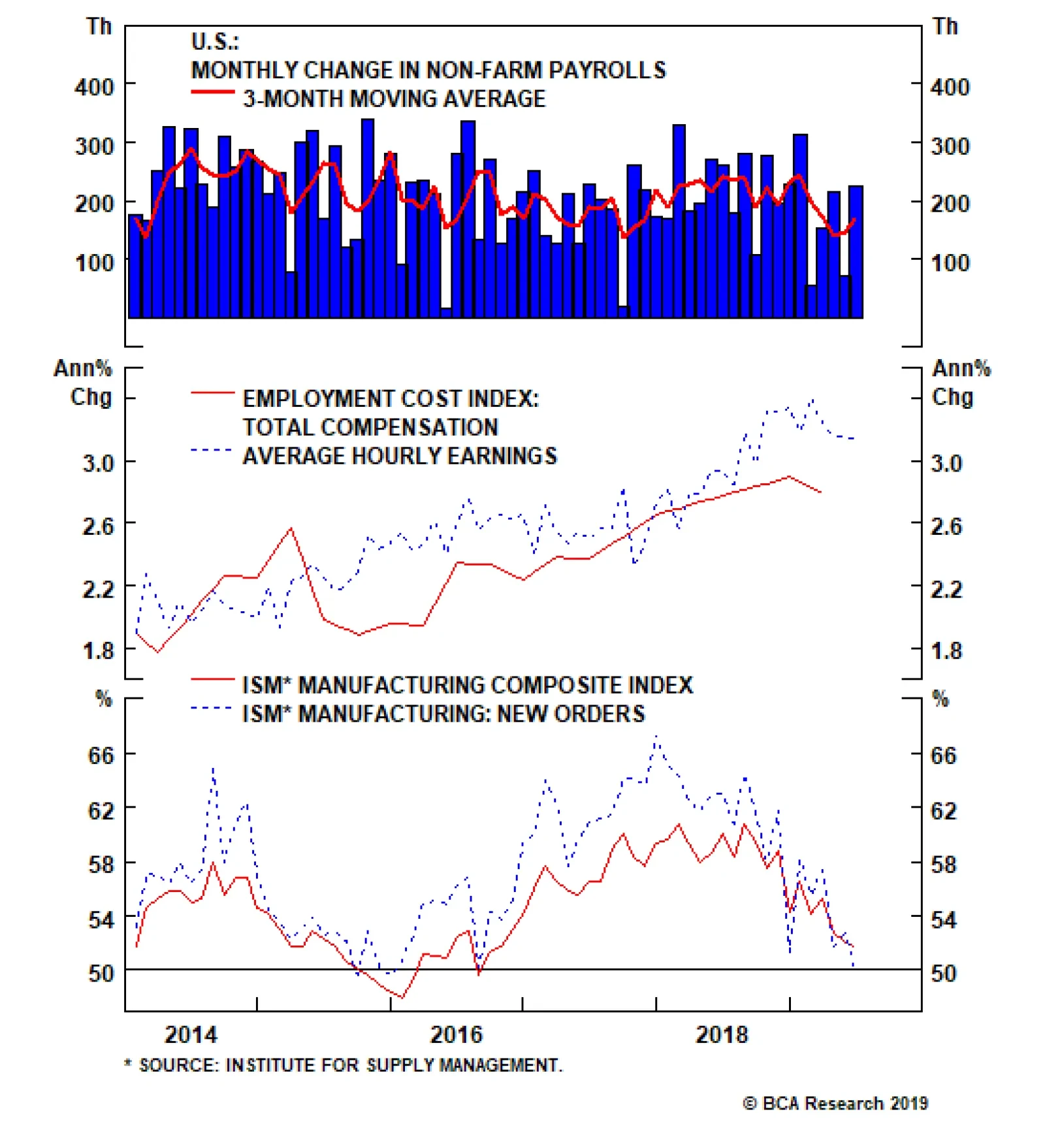 The 3-month moving average of U.S. non-farm employment is still at a robust 150k. Yet, the bond market has gotten very excited - bond yields are making new cycle lows. Given that U.S. manufacturing and some…
