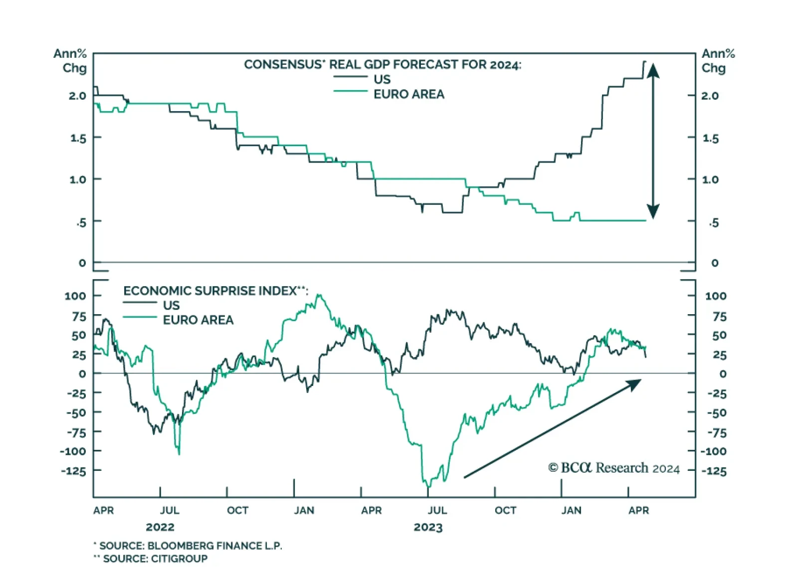 Investors anticipate a record growth gap between the US and the Eurozone in 2024. Does this skewed expectation create market opportunities?