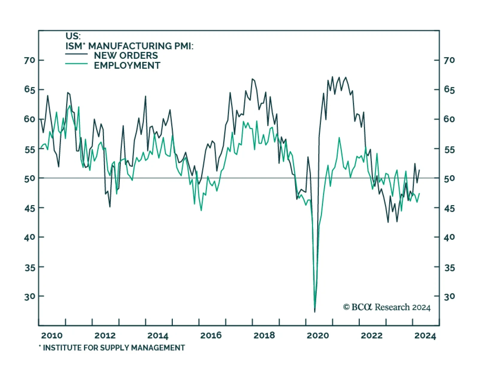 The ISM Manufacturing PMI came in at 50.3 in March, better than expectations of 48.4 and breaking above the 50 boom-bust line for the first time since September 2022. Notably the new orders component rebounded to 51.4, marking…