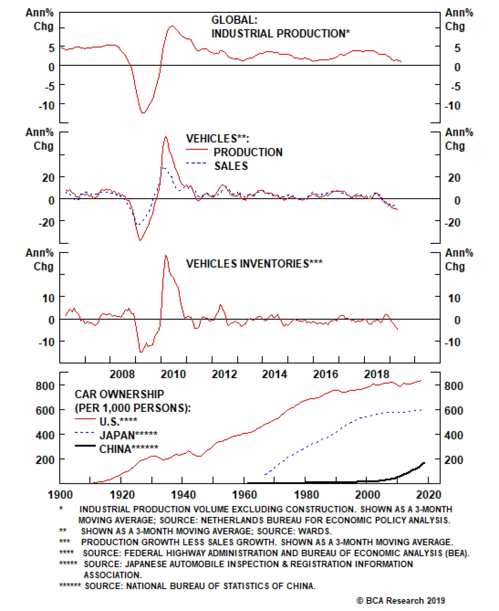 The automobile sector has been the key driver of the global manufacturing slowdown. This is in contrast to 2015-16, when the main culprit was declining energy capex. According to Wards, global vehicle production is down about 10…