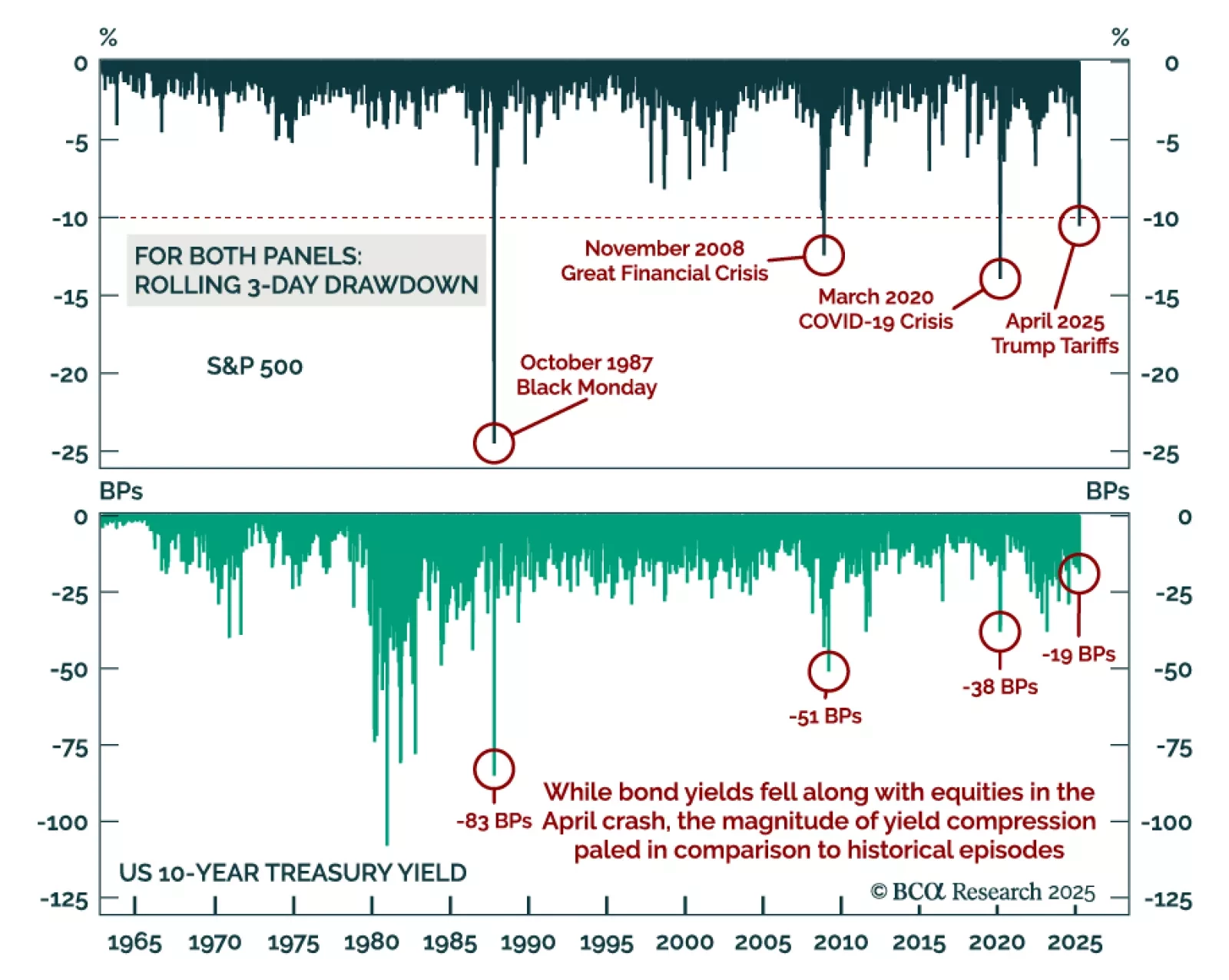 Equities’ post-Liberation Day selloff was historic, but cross-asset signals make it an anomaly. The post-Liberation Day S&P 500’s three-day, 10%+ drawdown joined a list of major episodes that includes the March 2020 COVID-19…