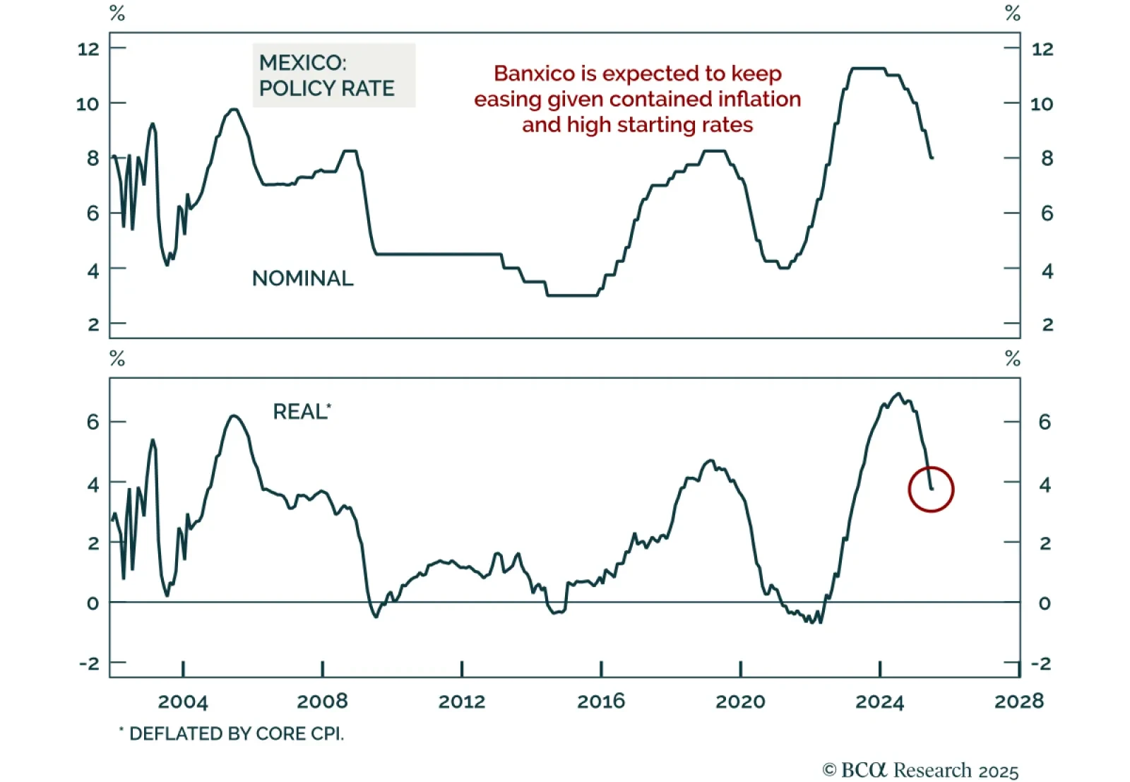 Banxico cut rates to 7.5%, reinforcing our call to go long Mexican local bonds and overweight Mexico across EM portfolios. Inflation is within target, giving policymakers space to ease. Sound fiscal management and strong external…