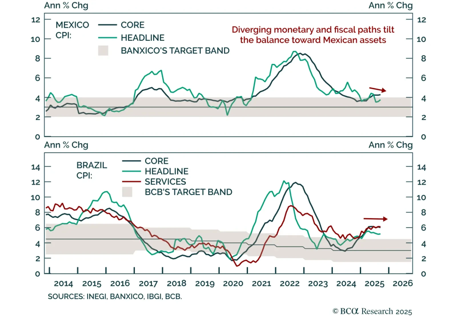 September CPI releases in Brazil and Mexico reinforce a divergent inflation and policy outlook that supports an overweight stance in Mexican local bonds and currency relative to Brazilian assets. Brazil’s headline CPI at 5.2% was…