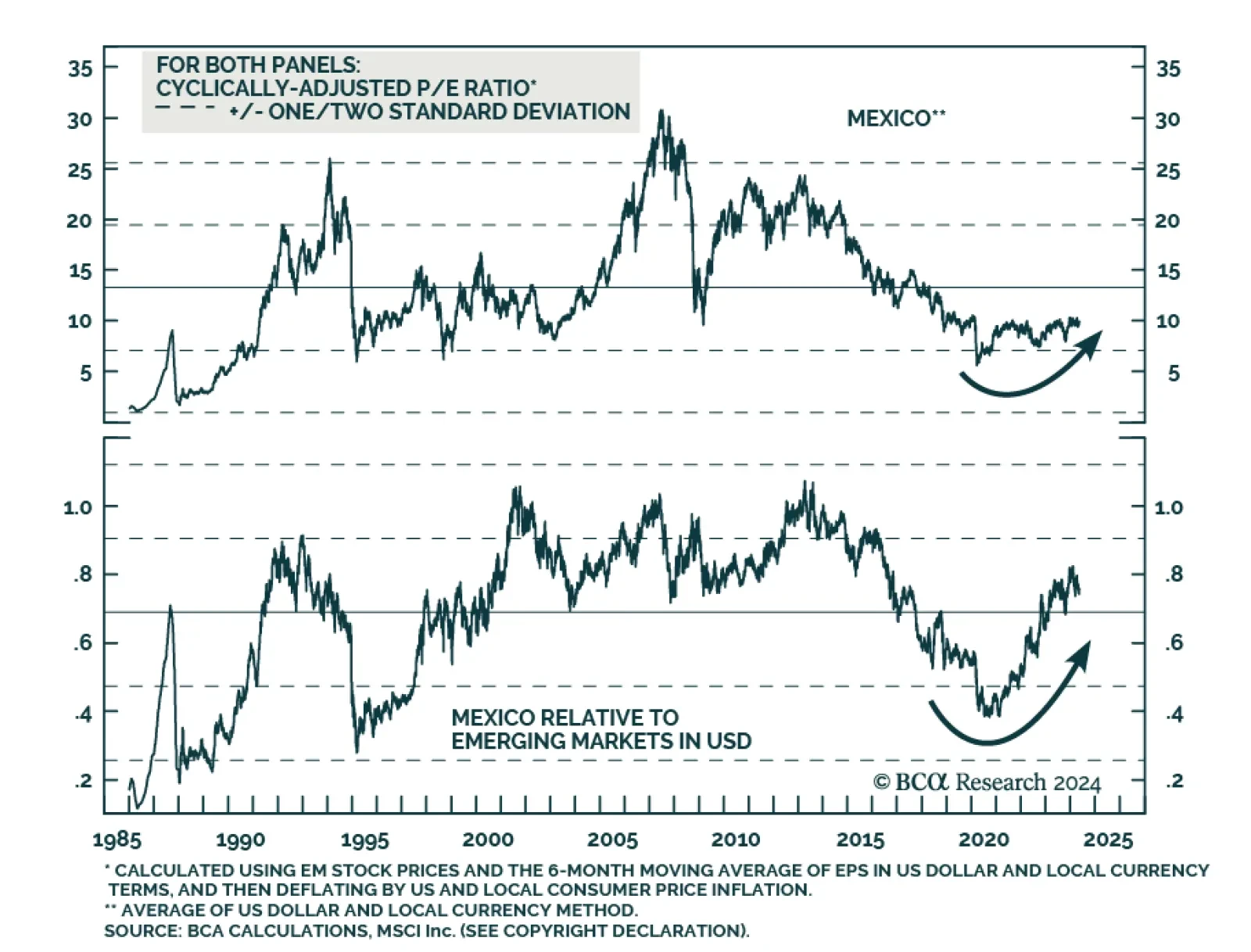 BCA Research’s Emerging Markets Strategy service remains overweight Mexican financial markets relative to their EM counterparts on a cyclical and structural basis. While Mexican markets will suffer in absolute terms with…