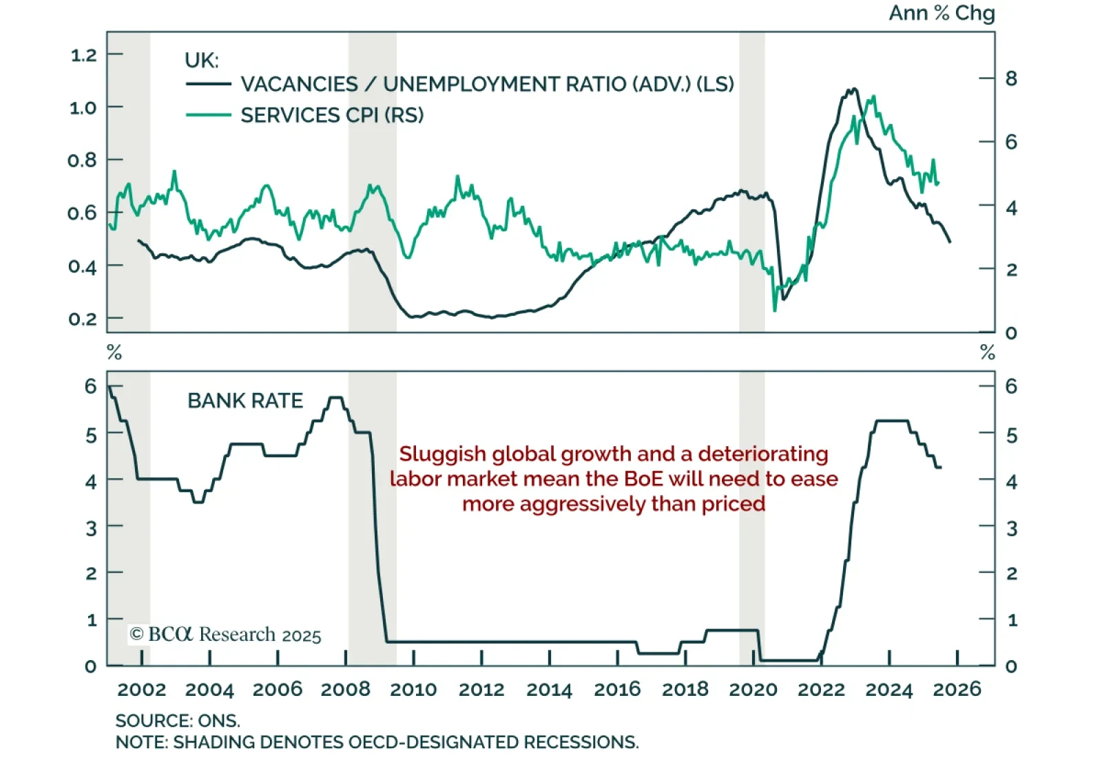 The BoE delivered a narrow rate cut to 4%, but a divided vote and fading growth momentum suggest markets are underpricing further easing. Stay overweight UK Gilts. The 5-4 split reflected concerns among dissenters about a…