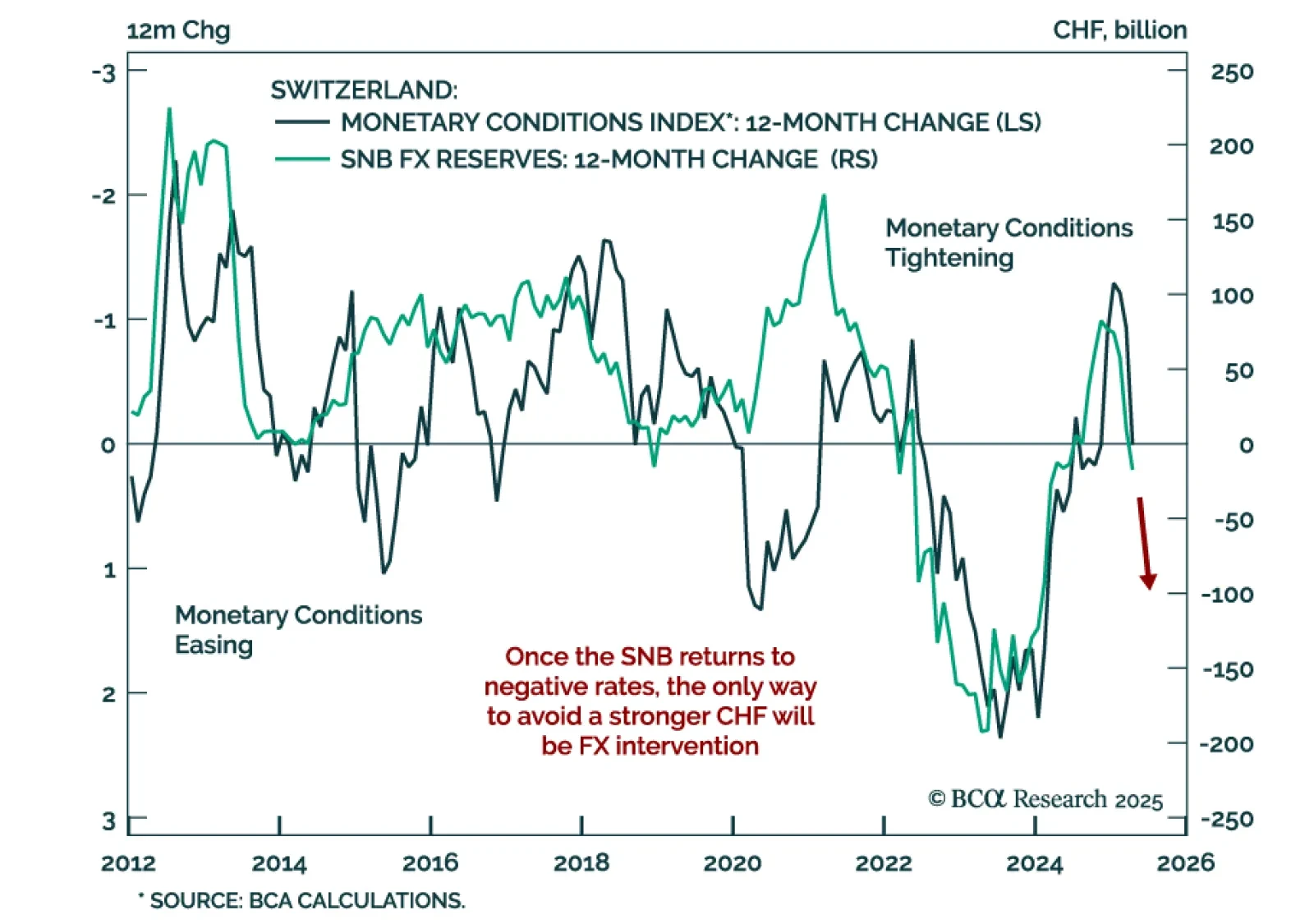 Swiss National Bank will have to resort to negative interest rates and FX intervention before year-end. Swiss inflation fell to 0% year-over-year in April, or the lower end of the SNB’s 0%-2% target range, and the continued…