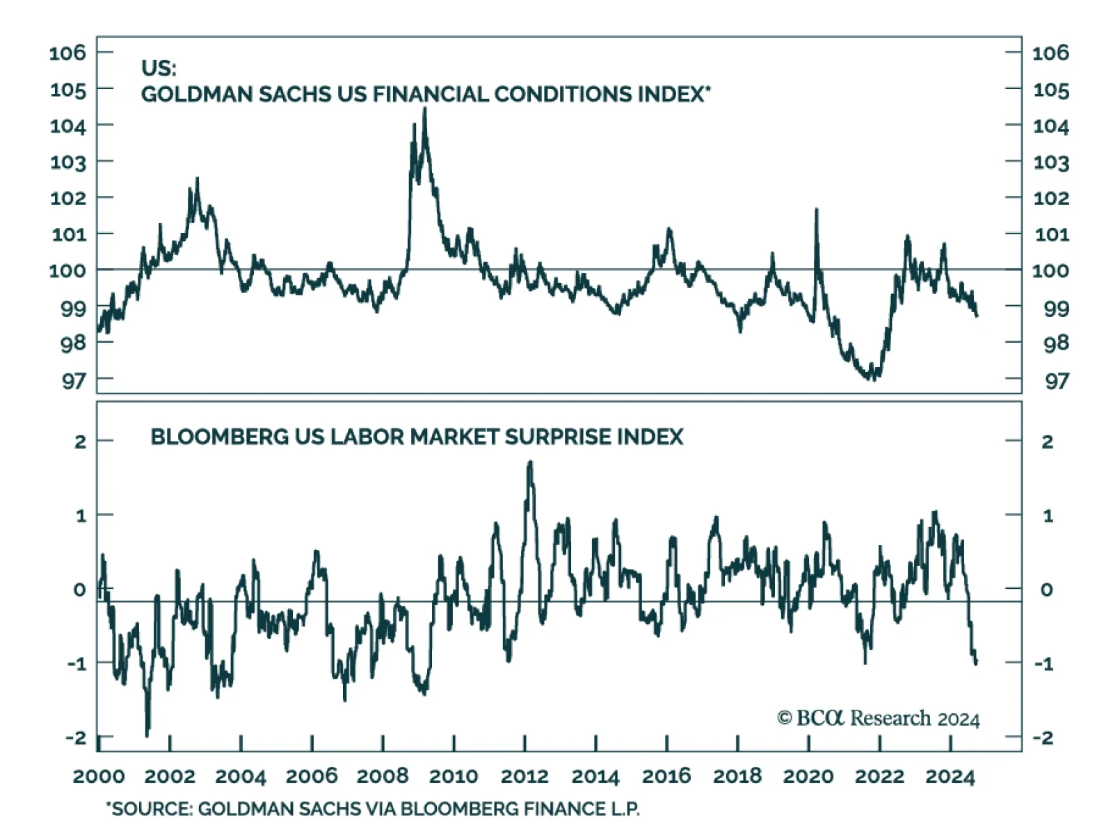 US financial conditions have become noticeably easier since August. The Fed has embarked on its easing cycle with a bang, sending equities higher and spreads lower, while the trade-weighted dollar gave back more than half of its…
