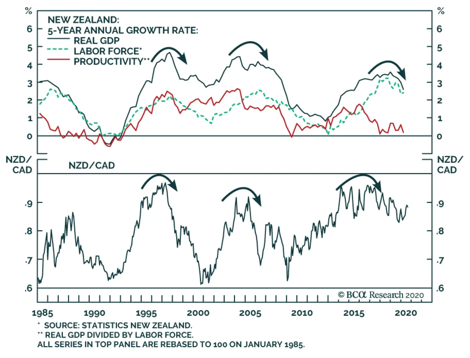 A tactical trading opportunity has also opened up to go short the NZD/CAD cross. First, the New Zealand stock market is the most defensive in the world, given the high concentration in consumer staples, healthcare and telecom…