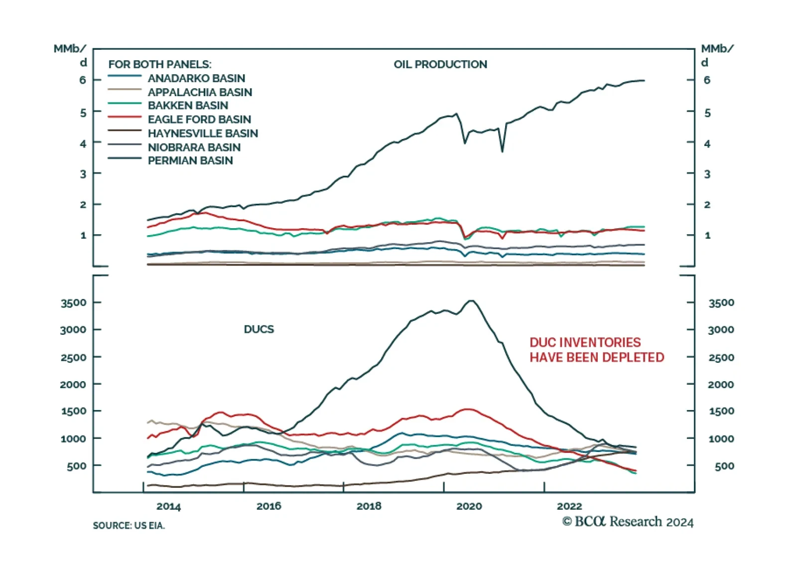 The 1mm b/d surge in US crude oil production last year was the result of a flood of low-cost drilled-but-uncompleted (DUCs) shale-oil wells coming online, mostly in 2H23 in the Permian Basin, which our colleagues in BCA's…