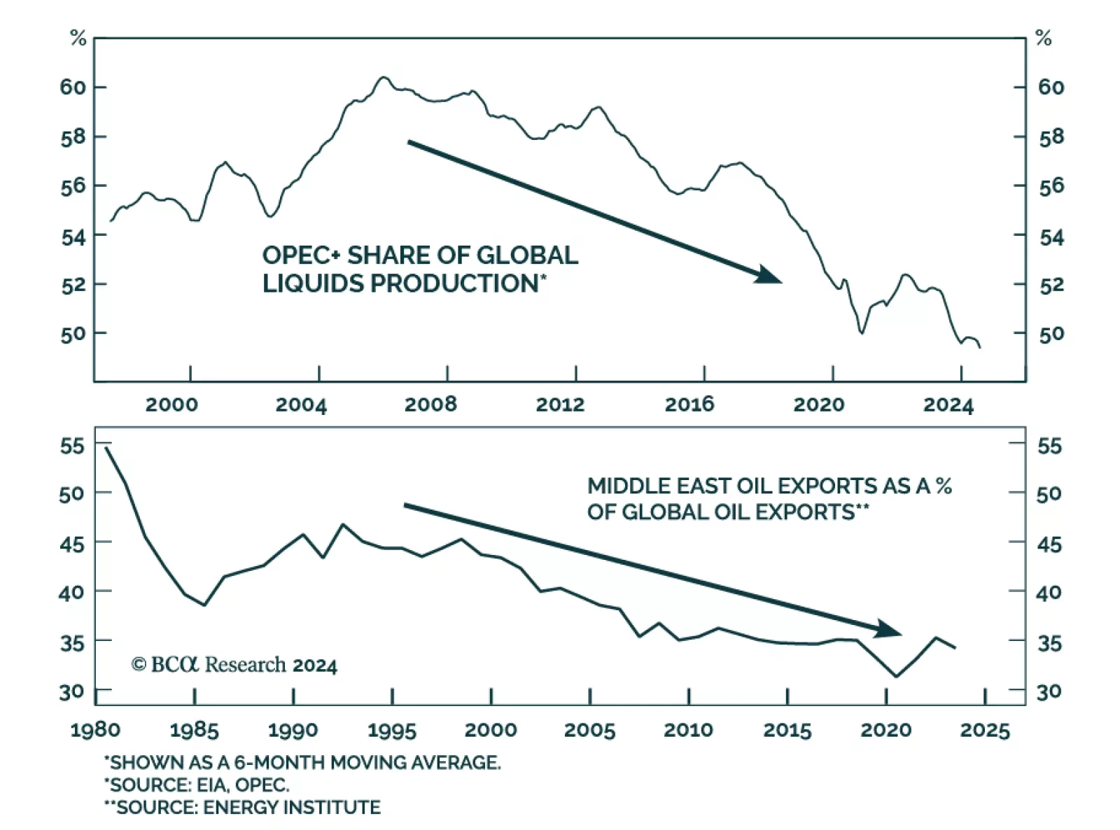 Stay overweight US equities versus world, long US energy sector versus Middle East stocks, and long Canada and Mexico versus global-ex-US stocks.