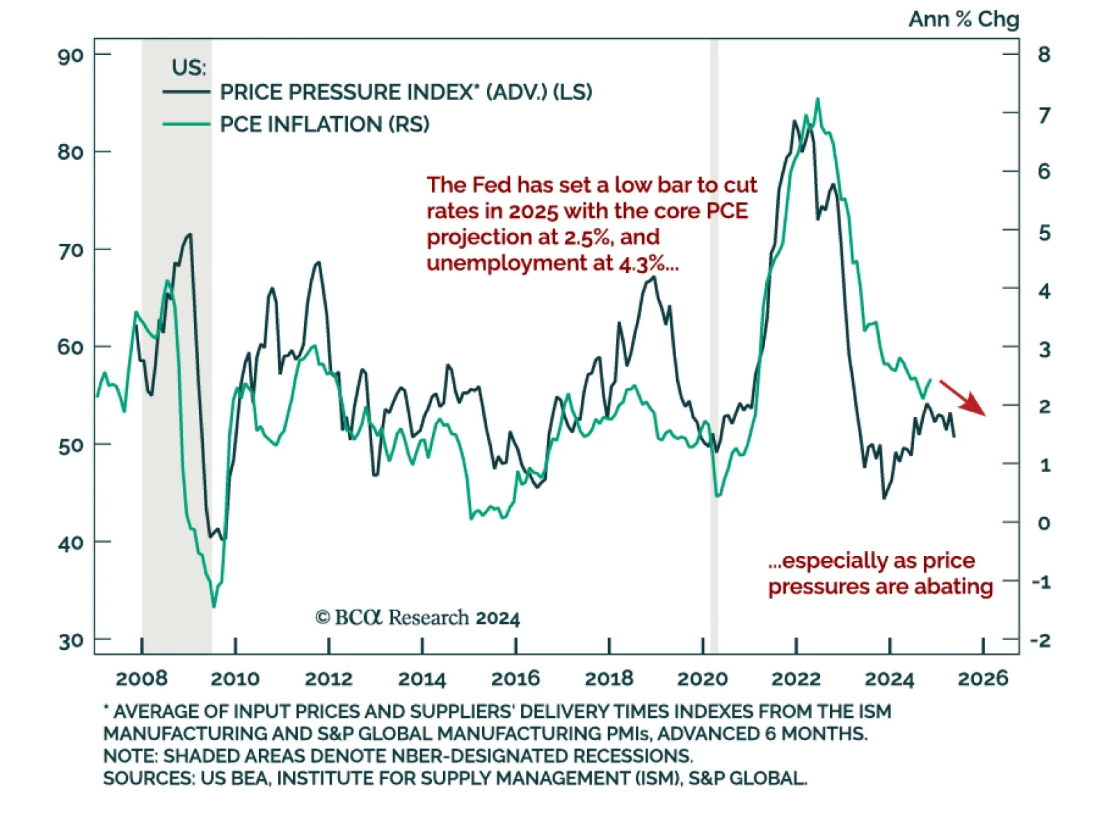 Our US Bond Strategy team published their outlook for the Fed in 2025. They expect more cuts than the 50 bps signaled by the Fed at its December meeting. Core PCE inflation is tracking well below the Fed’s 2.5% forecast, while…