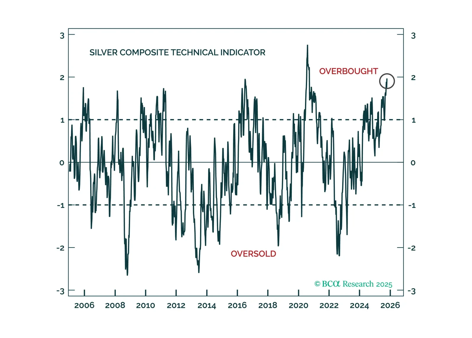 Silver’s short squeeze and stretched technicals warn of a potential tactical pullback.