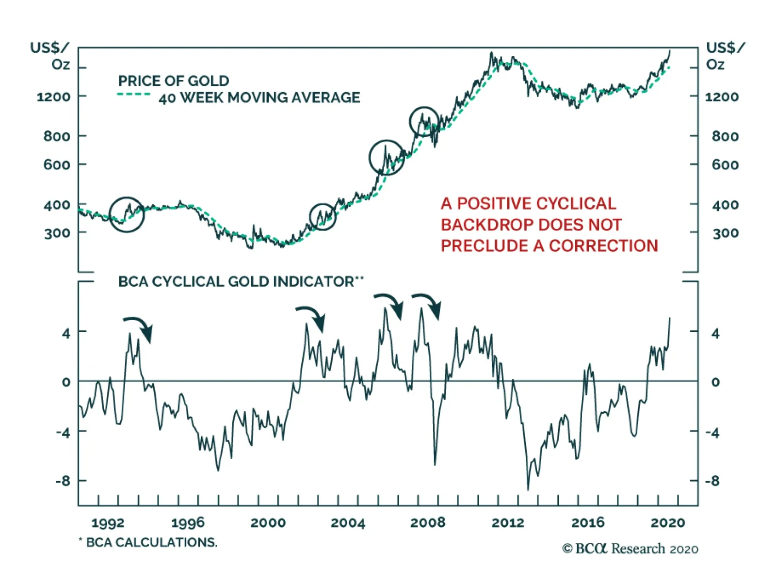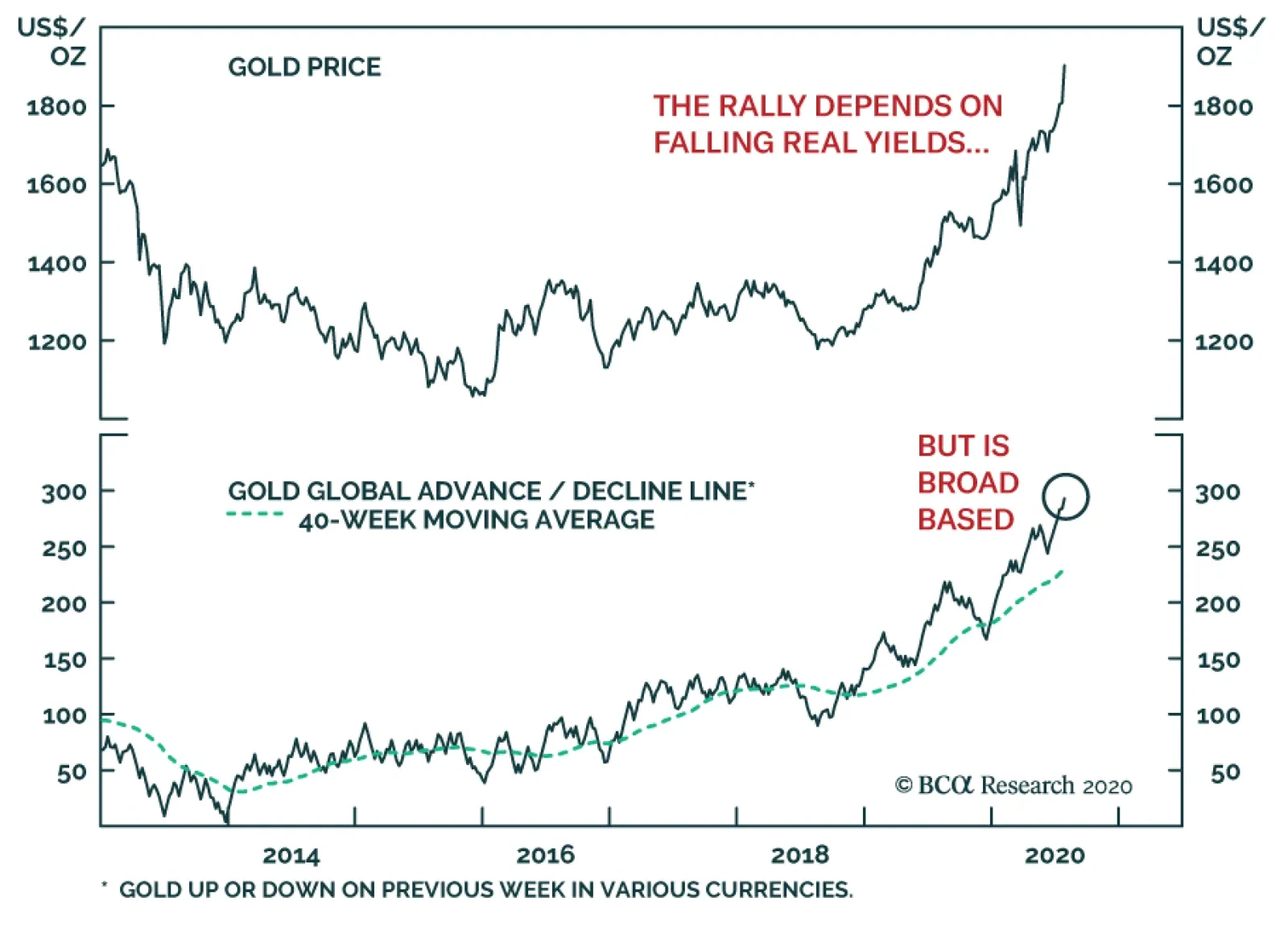 Boosted by declining real interest rates and rising inflation expectations, gold punched through the psychologically important $2000/oz level. From a tactical perspective, gold is now vulnerable to a countertrend correction. Our…