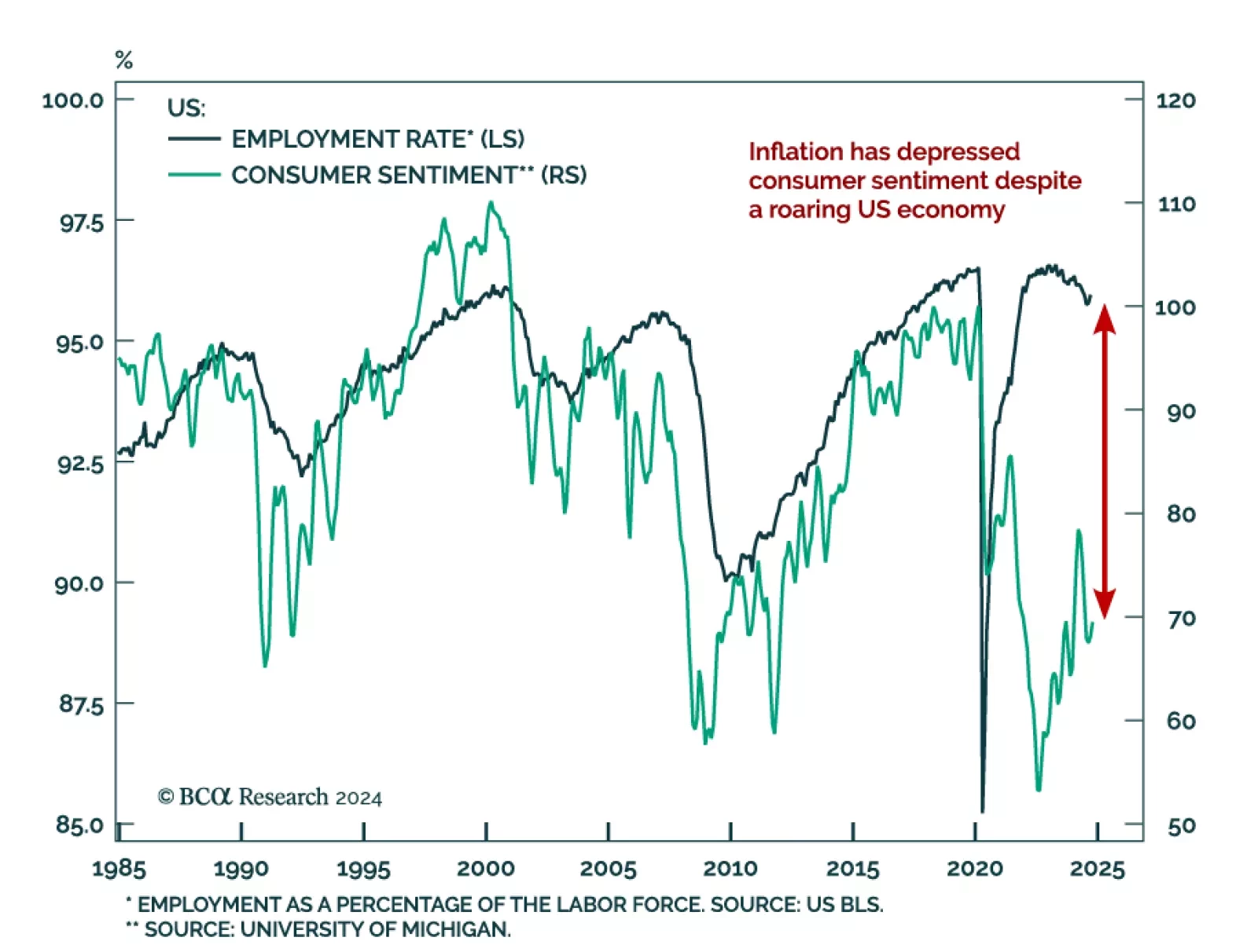 The main driver of global consumer sentiment in the past few years has been high inflation. Nowhere has this been the case more than in the US, where measures of animal spirits were depressed despite a roaring economy. Today,…