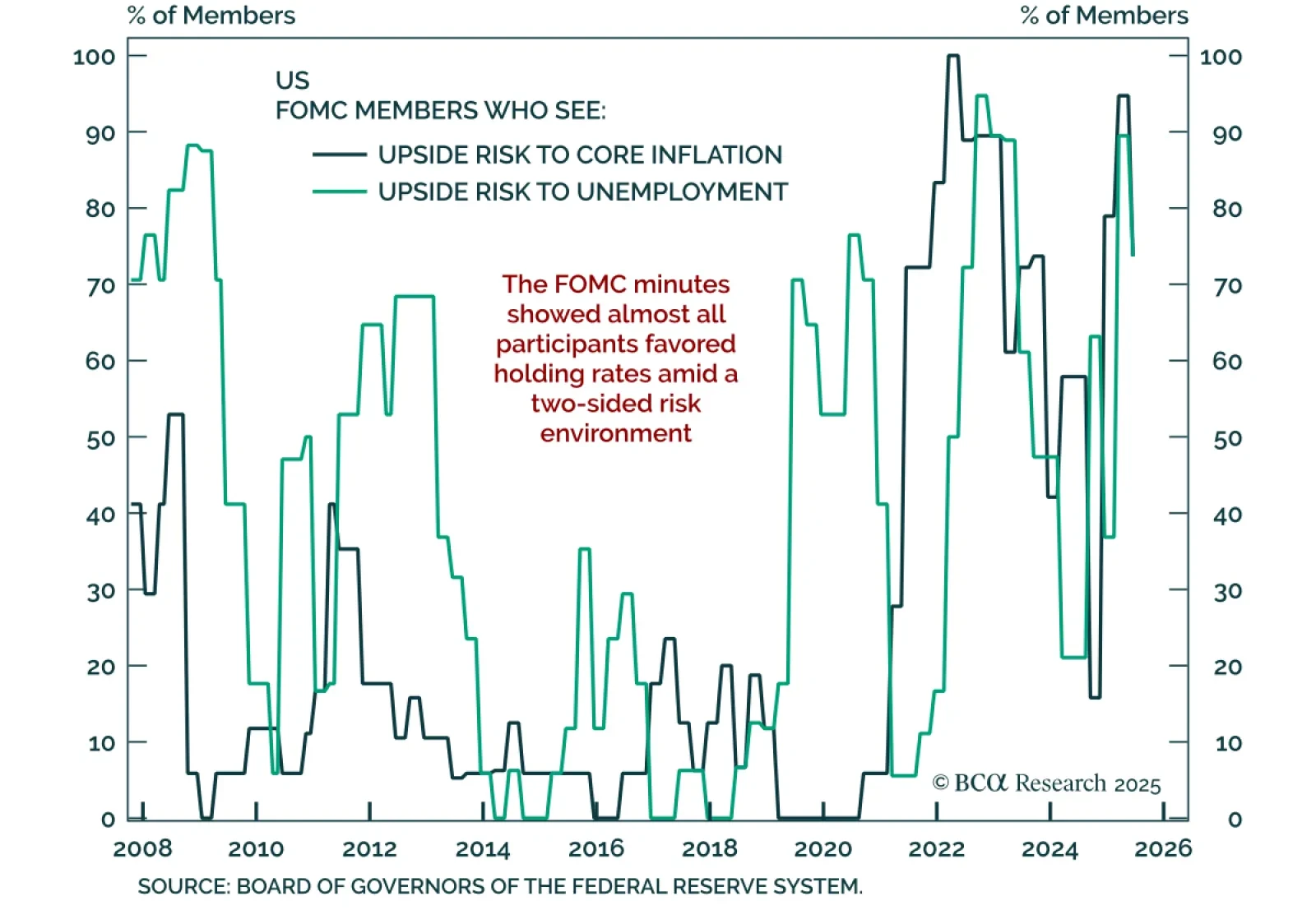 FOMC minutes showed broad support to hold in July, but the committee remains divided between proactive doves and reactive hawks. “Almost all members” favored leaving the funds rate unchanged, though two dissented for an…