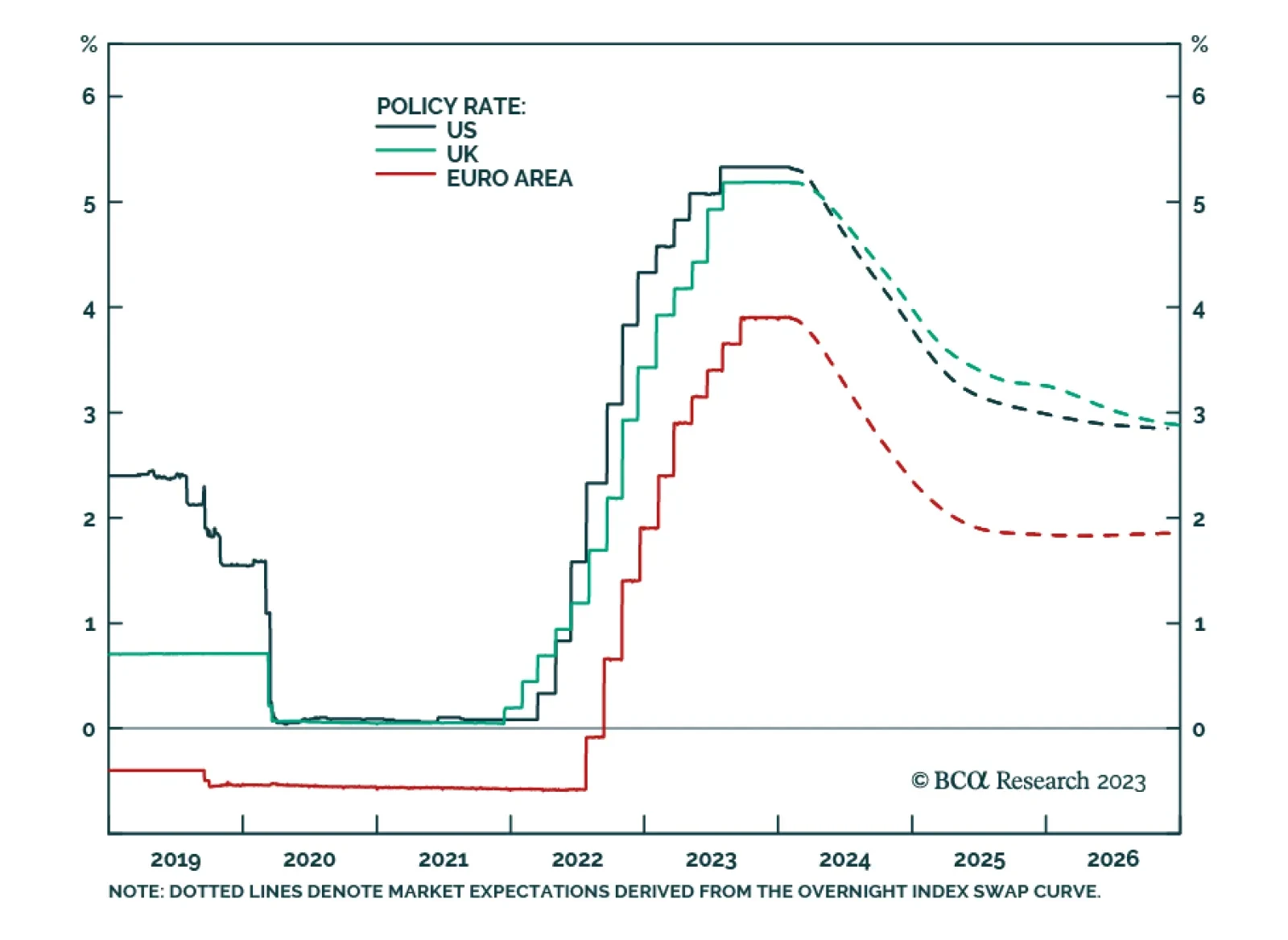 Given the huge disparities in wage inflation between the US, euro area and UK, it is remarkable that the markets are pricing near-identical rate cuts from the Fed, ECB, and BoE of around 150 bps through 2024. Assuming central…