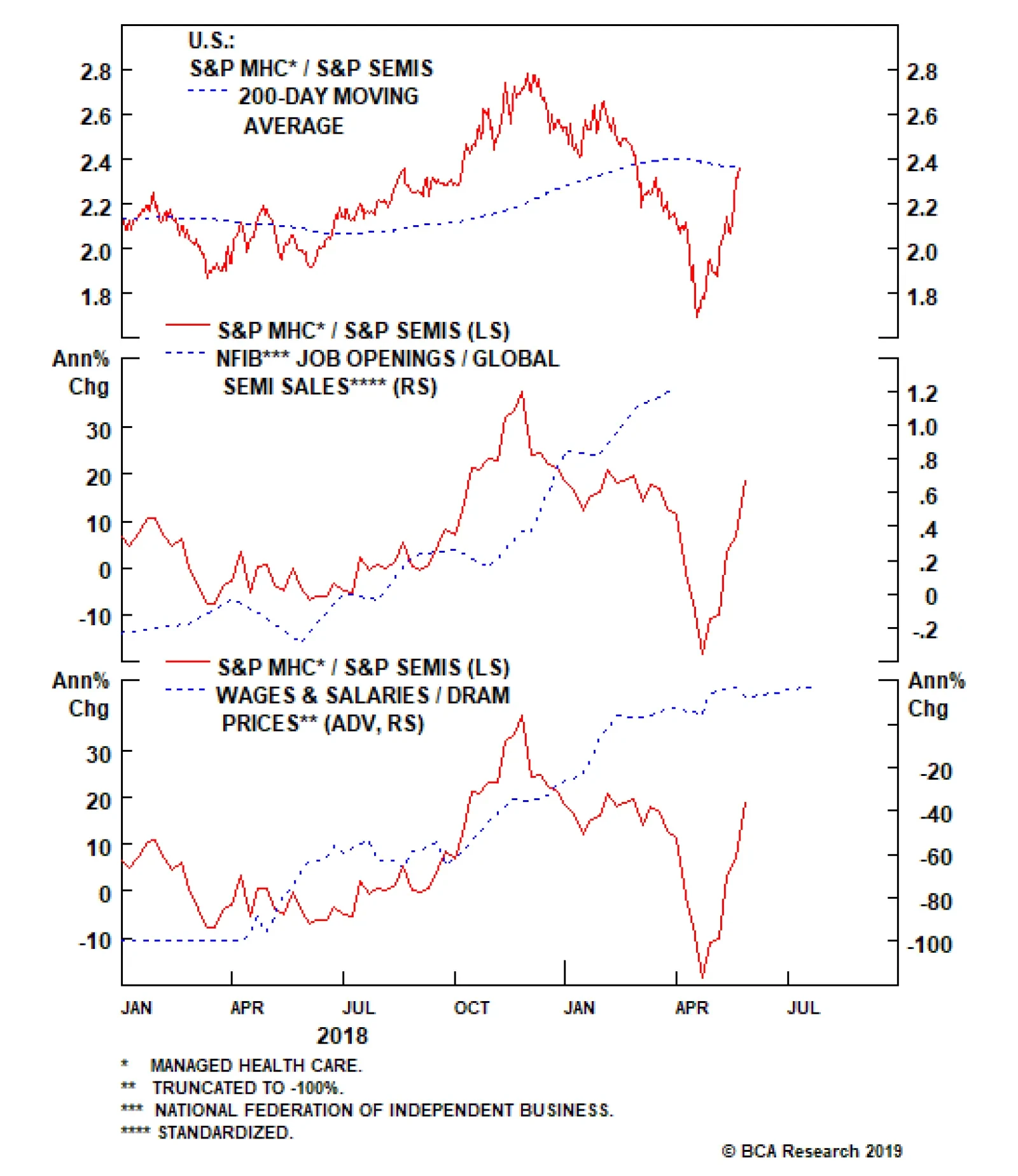 Yesterday we were stopped out on our long S&P managed health care/short S&P semis market neutral pair trade initiated on May 13, 2019 for a gain of 10%. Our thesis remains intact that a lot of negative news has been priced into HMOs on the back of the threat of the “Medicare For All” bill…