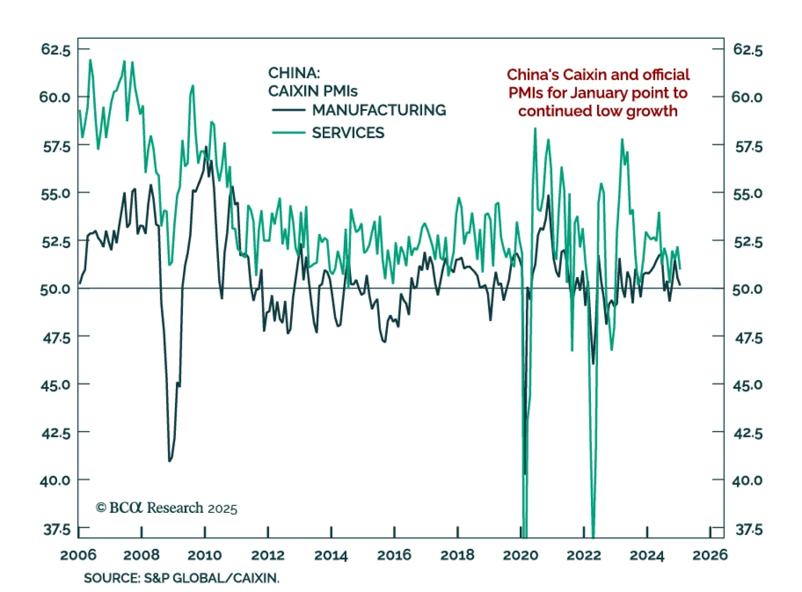 China’s Caixin PMIs decelerated in January, with the composite ticking down to 51.1 from 51.4. The decrease was driven by both manufacturing, which fell to 50.1 from 50.5, and services, which fell from 52.2 to 51.0. The data is…